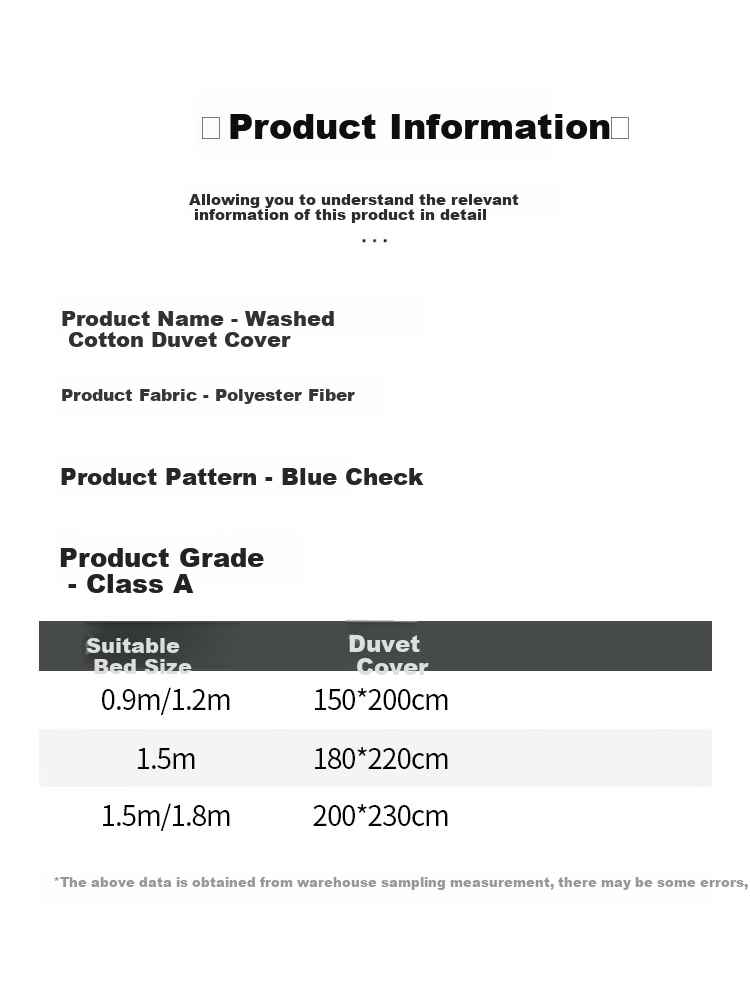 **Product Details:** Water-washed cotton fabric with a soft and delicate touch, durable stitching, and wrinkle-resistant finish