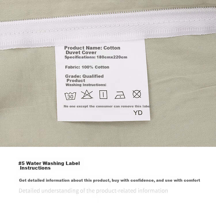 **Label:** Cannot be removed by anyone other than the consumer, YD, #5 washing label instructions