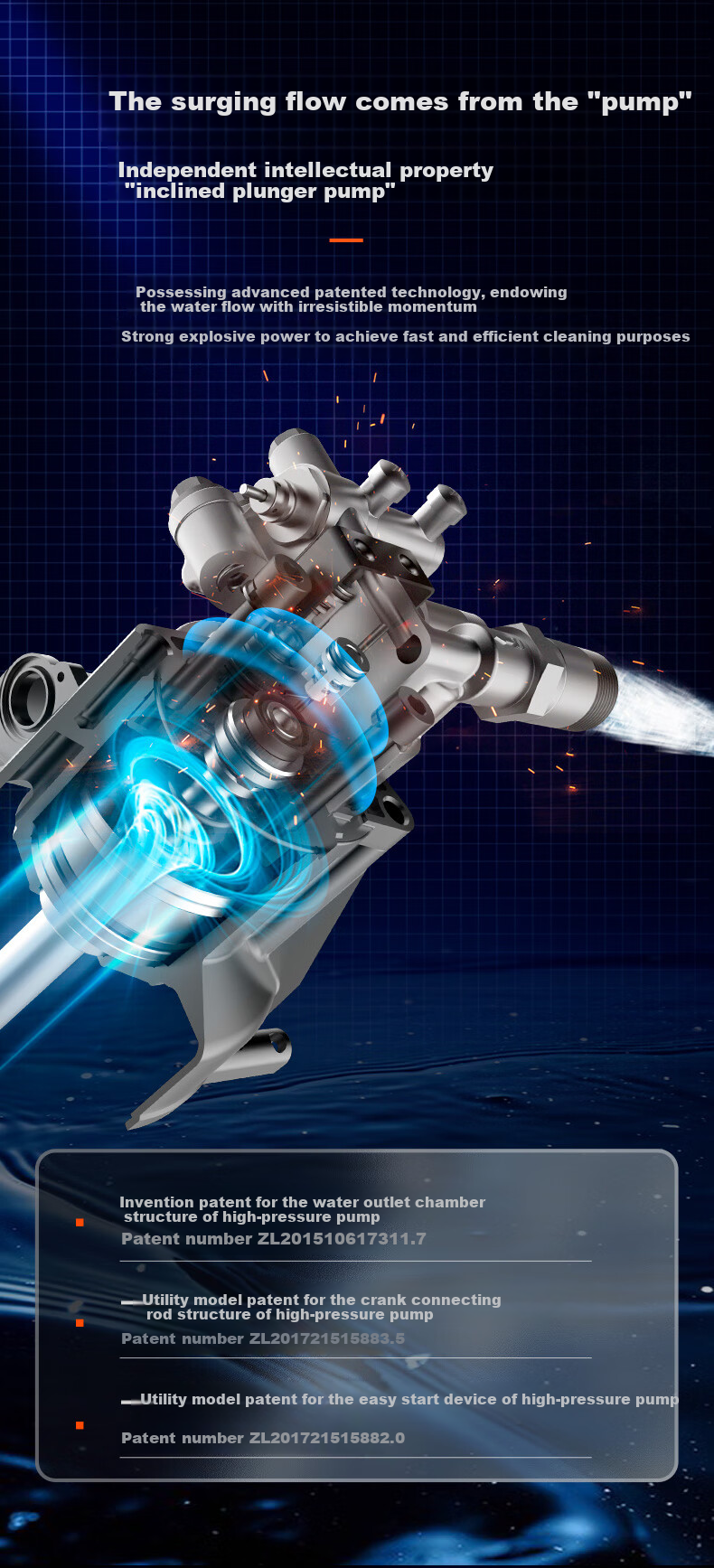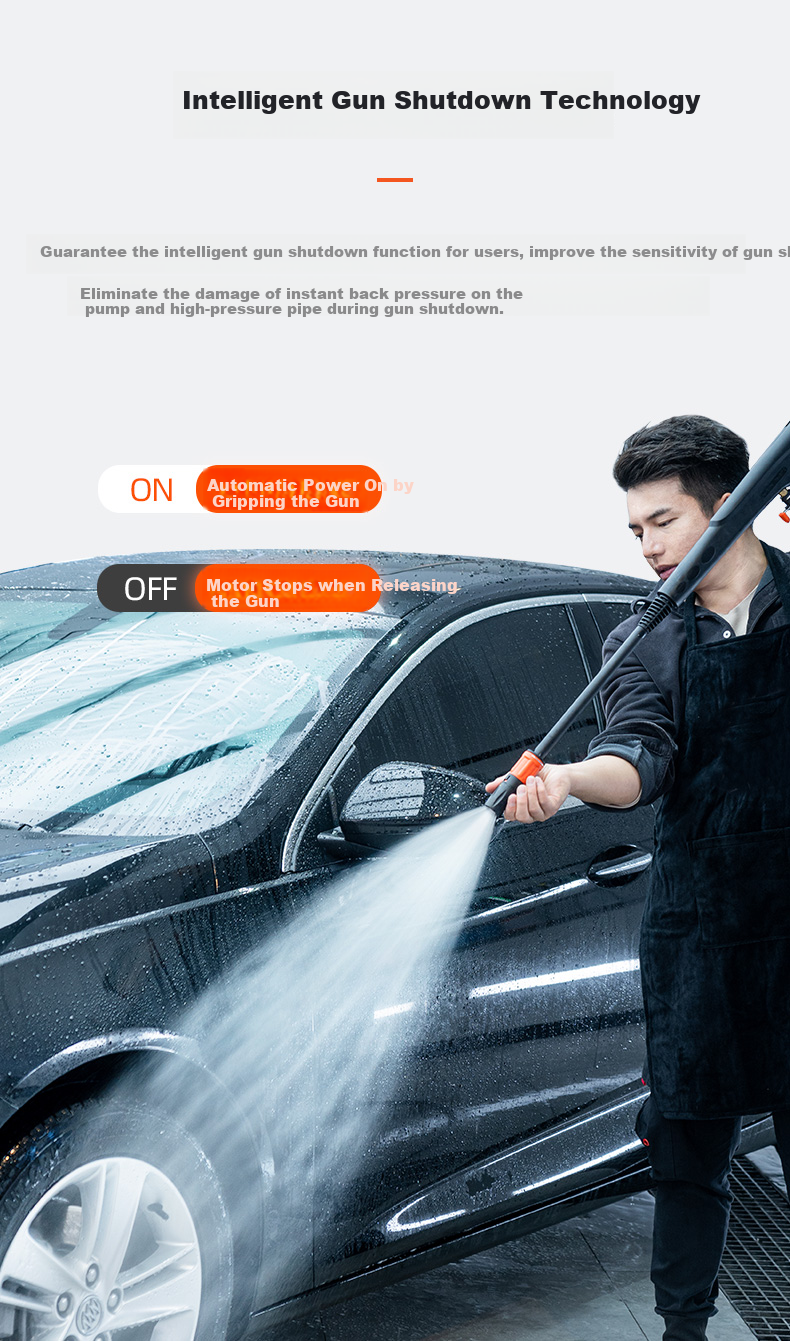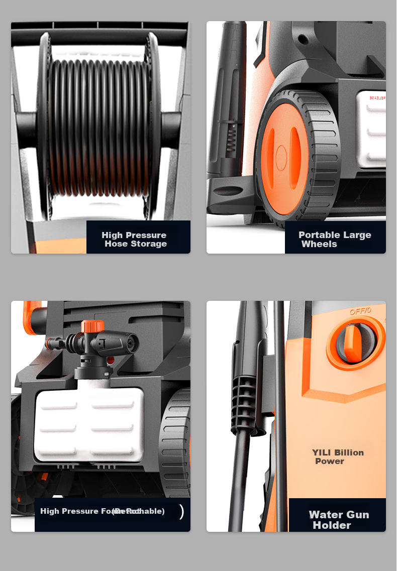 **Core Functions:** High pressure, large flow, automatic gun stop, multi-purpose, visible power, motor protection