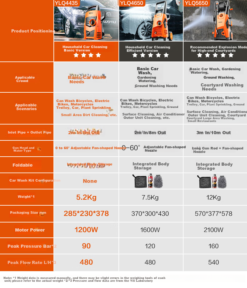 **Product Positioning:** Basic version for household car cleaning, efficient version for household car cleaning, recommended premium courtyard model
