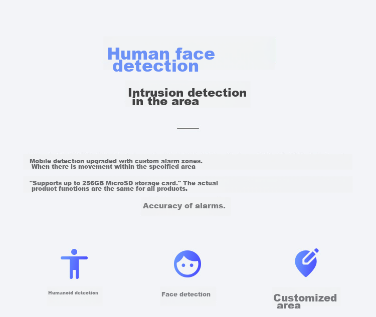 **Smart Features:** Human and face detection, customizable alert zones
