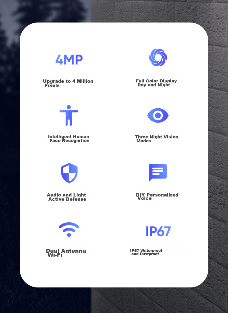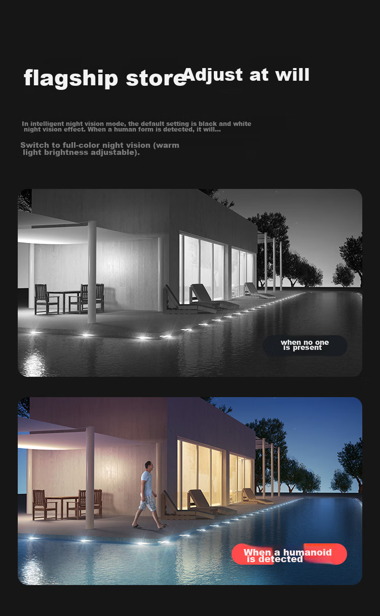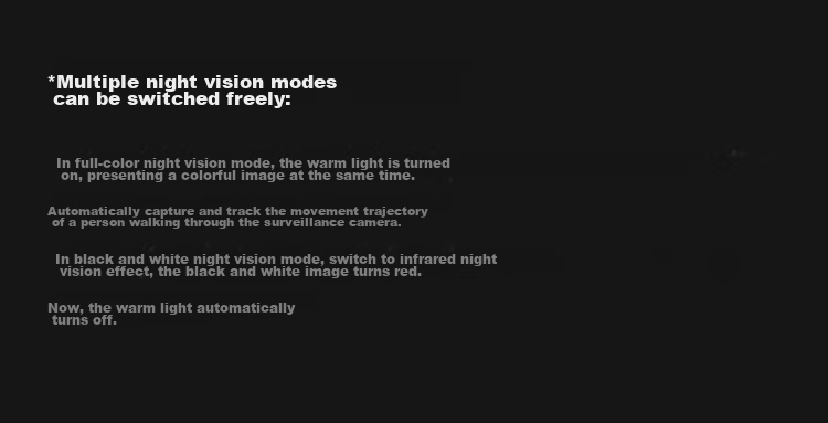 **Night Vision:** Four high-power warm lights and infrared lights