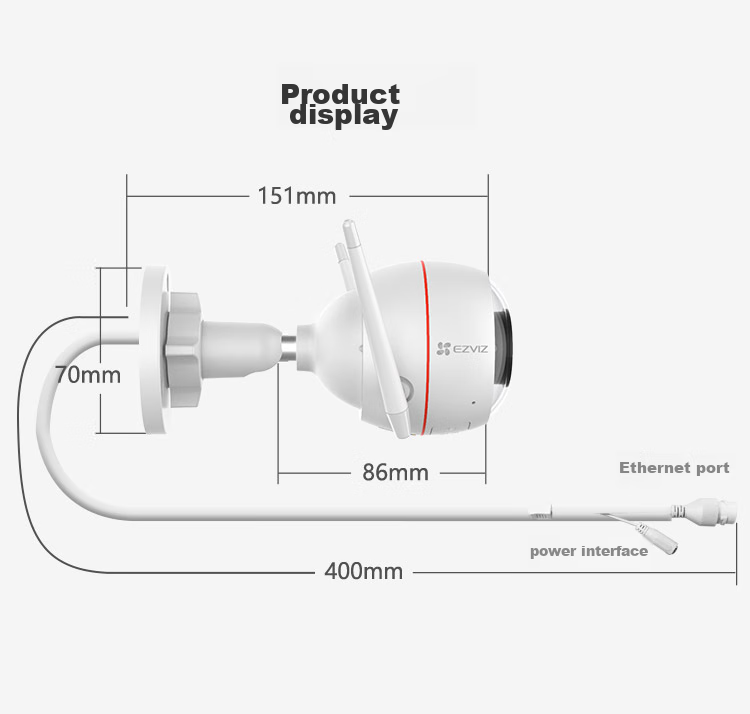 **Dimensions:** 151mm x 70mm x 86mm (camera), 400mm (packaging)