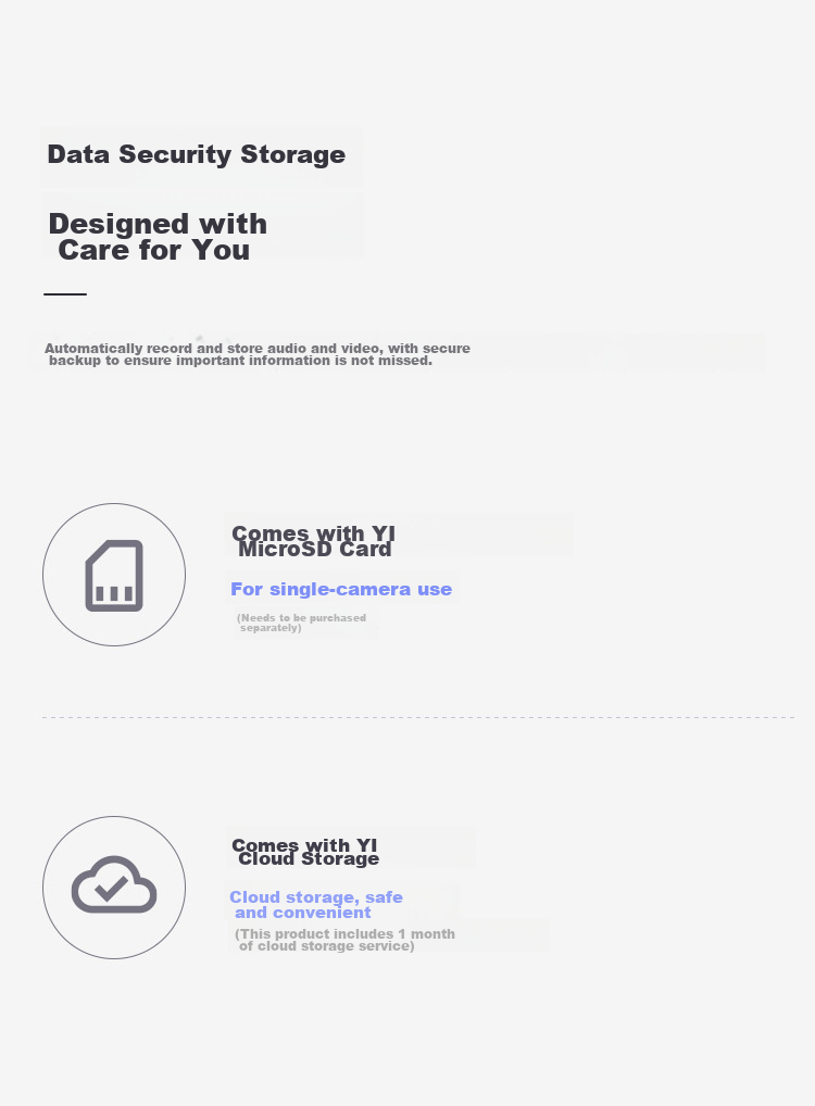 **Storage:** MicroSD card slot (card sold separately) and cloud storage (1-month free trial included)