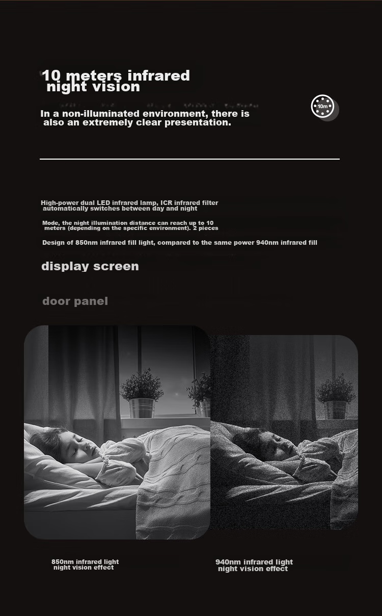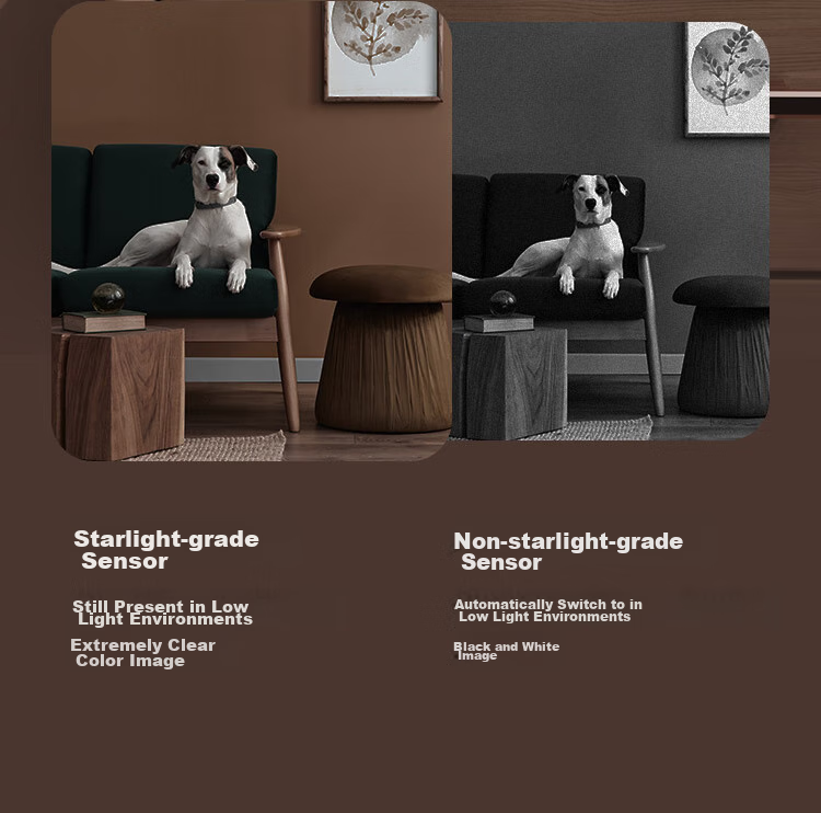 **Night Vision:** Starlight level night vision sensor provides clear and colorful images even in low light conditions. Infrared night vision up to 10 meters with high-power dual LED infrared lights.