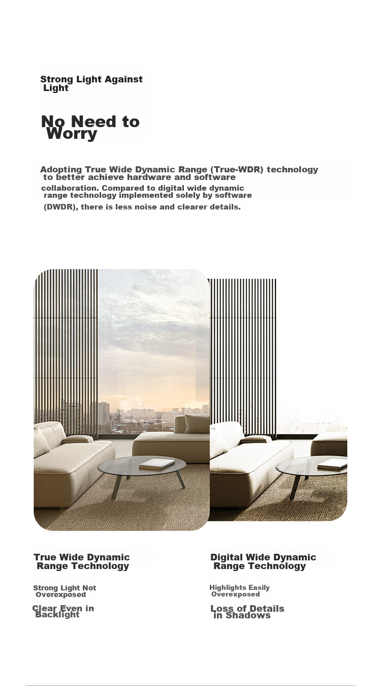 **WDR Technology:** True-WDR technology for better hardware and software coordination, reducing noise and enhancing details