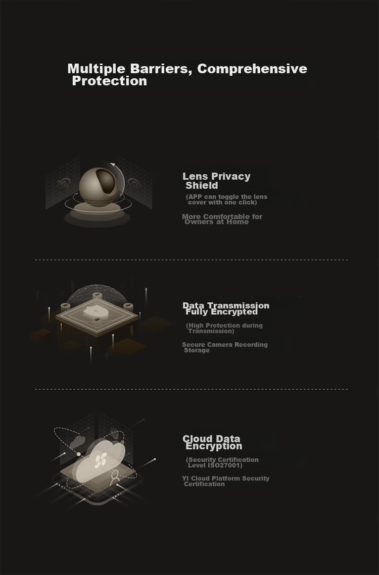**Privacy Protection:** Lens privacy cover, encrypted data transmission, and secure cloud storage