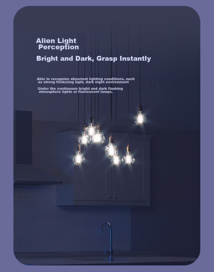 - Instantly detects abnormal lighting conditions such as strong flickering light, dark environments, etc.