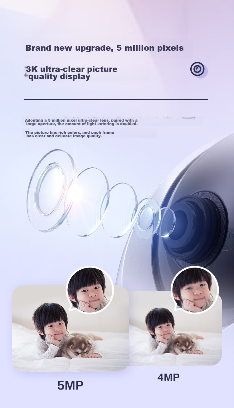 - Utilizes 5 million pixels ultra-clear lens with large aperture for increased light intake