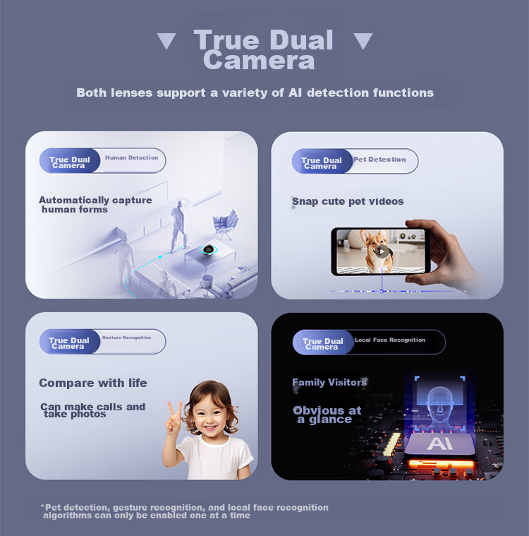 **Dual Camera Features:** Supports multiple AI detection functions simultaneously