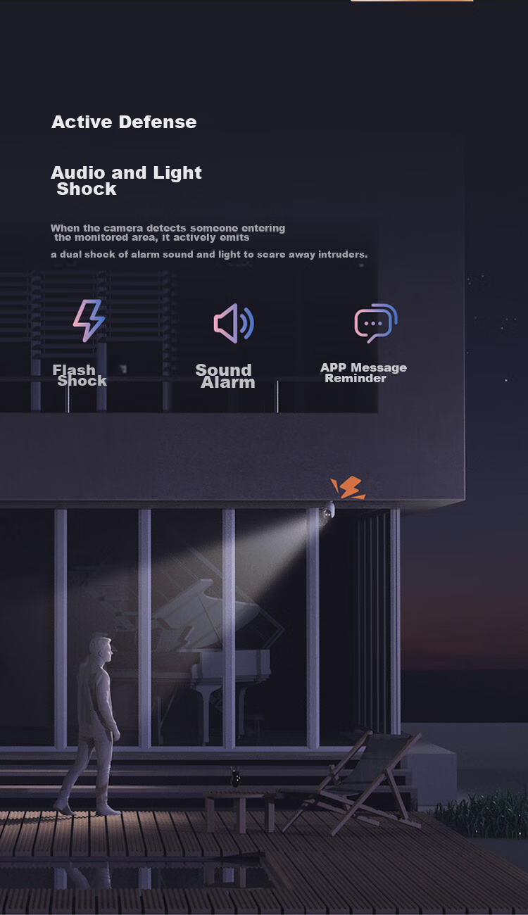 - Active defense with sound and light alarms