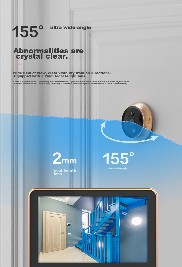 - 155° wide-angle view for a broader perspective
