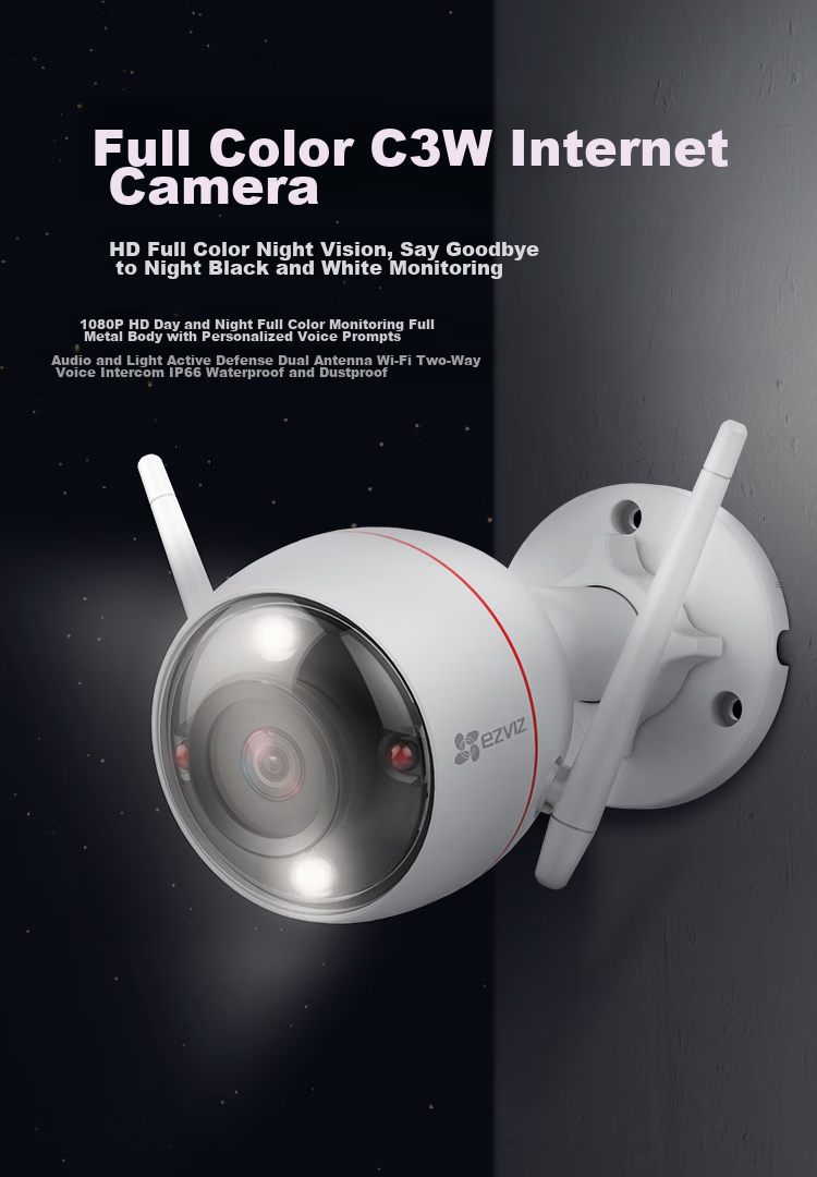 Full-color C3W internet camera with high-definition full-color night vision, 1080P HD day and night full-color monitoring, and personalized voice prompts.