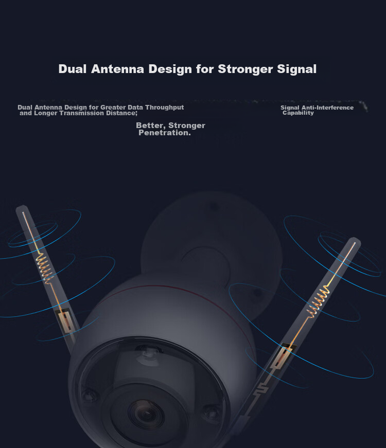 Dual-antenna design for strong signal reception and stable wireless connection.