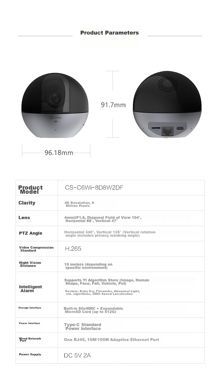 **Wired Network Port:** 1 RJ45, 10M/100M Ethernet port