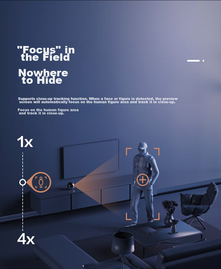 **Tracking:** Supports close-up tracking and 4x zoom, dual-picture display