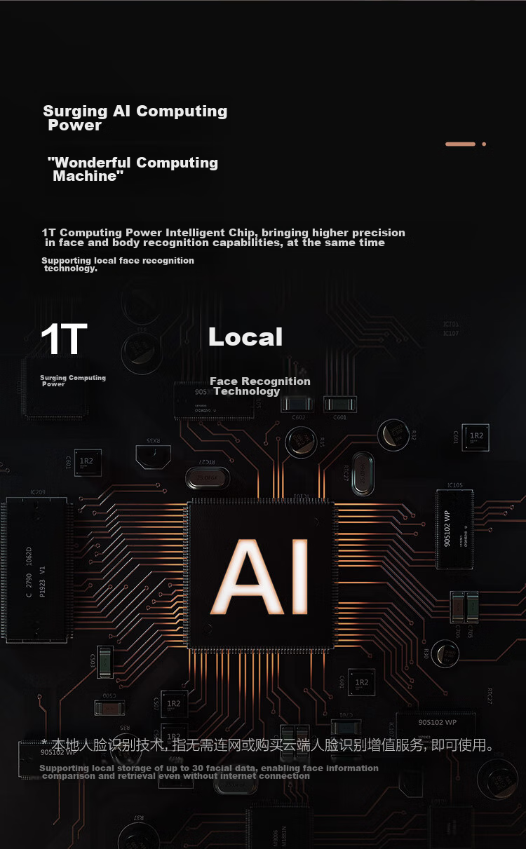 **AI Processing:** 1T AI chip, supports local storage of up to 30 face data for offline face comparison
