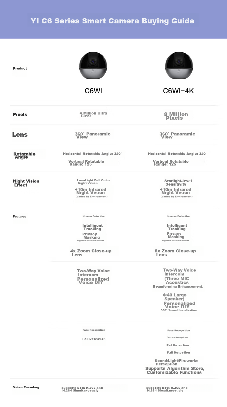 **Features:** Human detection, intelligent tracking, privacy mask, support for picture-in-picture, 4x digital zoom, 8x digital zoom, two-way voice communication, personalized voice messages, 360° sound localization, face recognition, fall detection, gesture recognition, pet detection, support for algorithm store, customizable functions