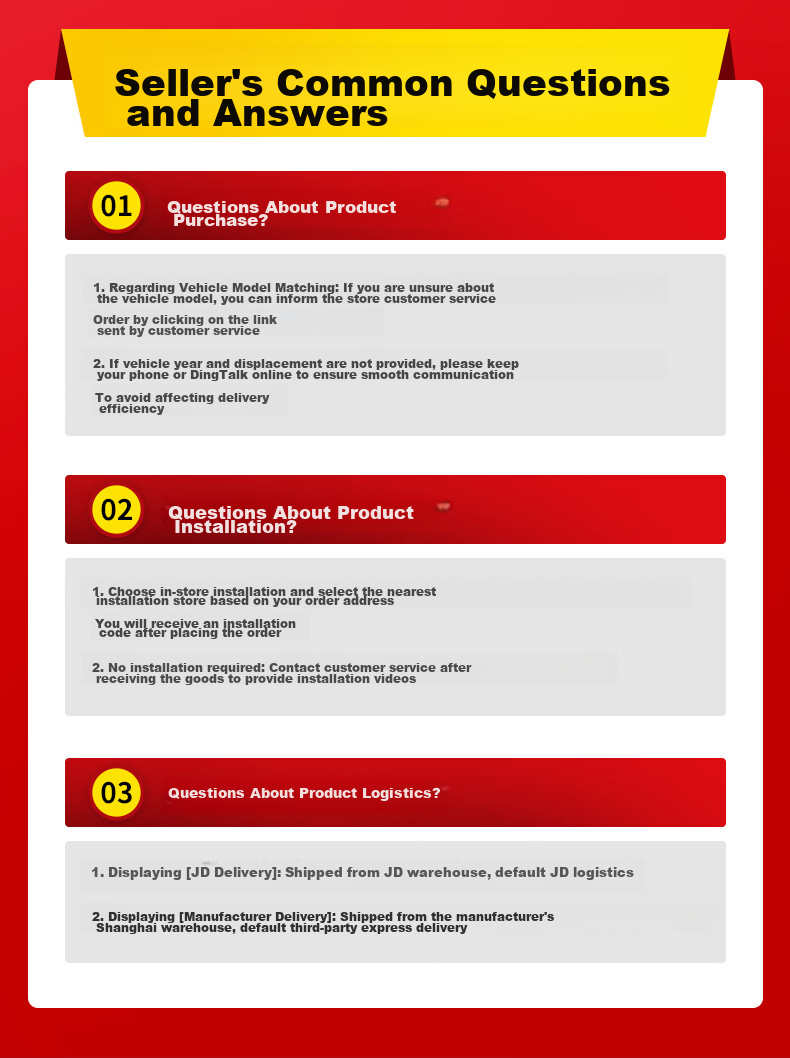 1. **Product Purchase:** For vehicle model matching, contact customer service if unsure. Provide vehicle year and displacement information to avoid delays in shipping.