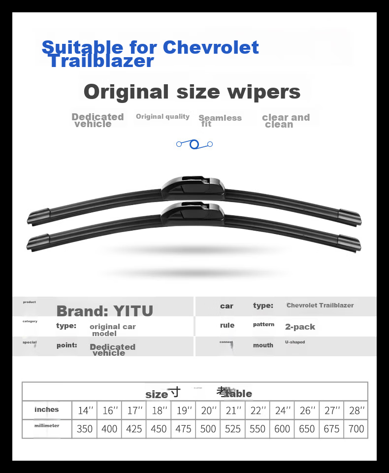 *Note: The product is designed for Chevrolet Trailblazer models and offers a clear view and high-quality wiping experience. The packaging has been upgraded for better protection during shipping.*