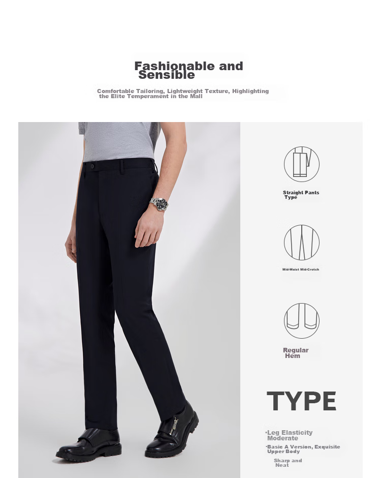 - Fashionable straight-cut design with mid-rise waist and regular leg opening