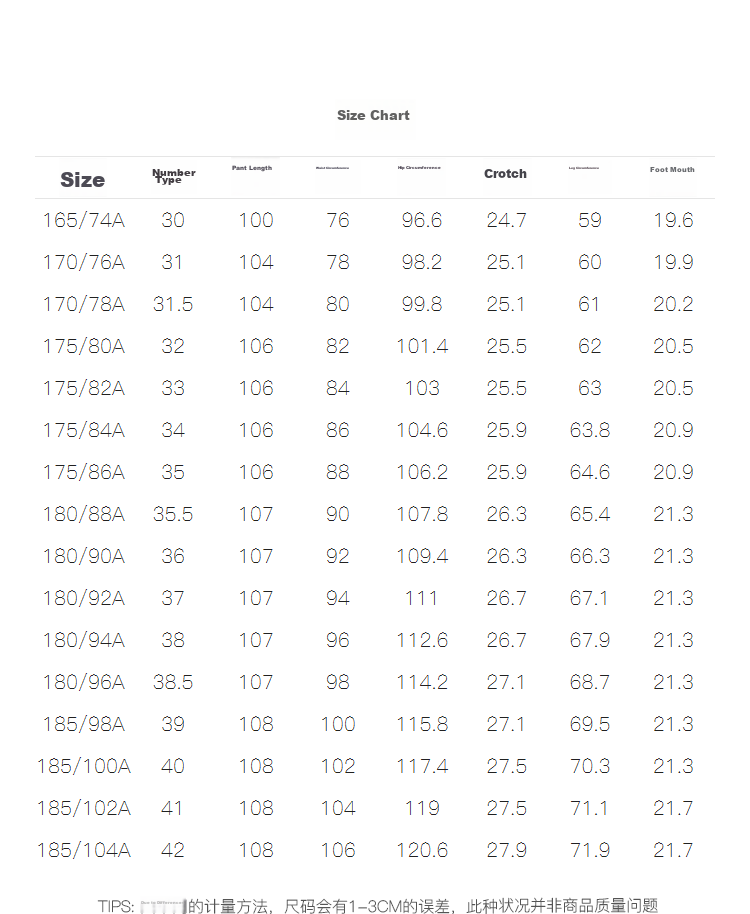 - (Please refer to the provided size chart for waist, hip, inseam, and length measurements)