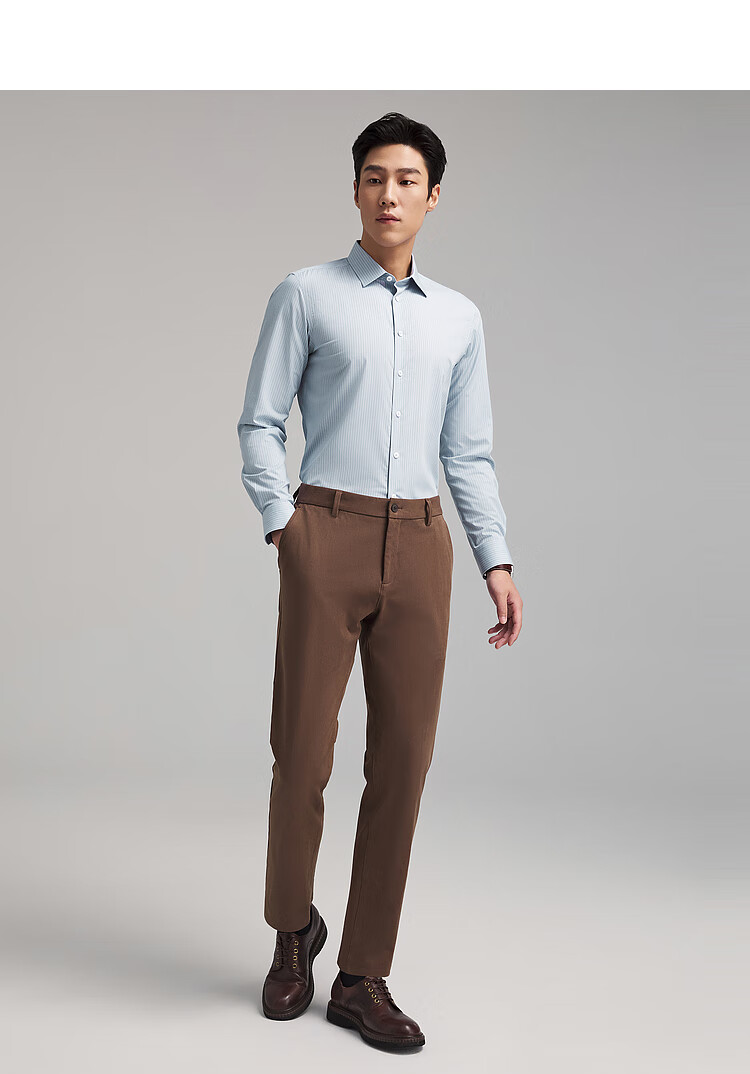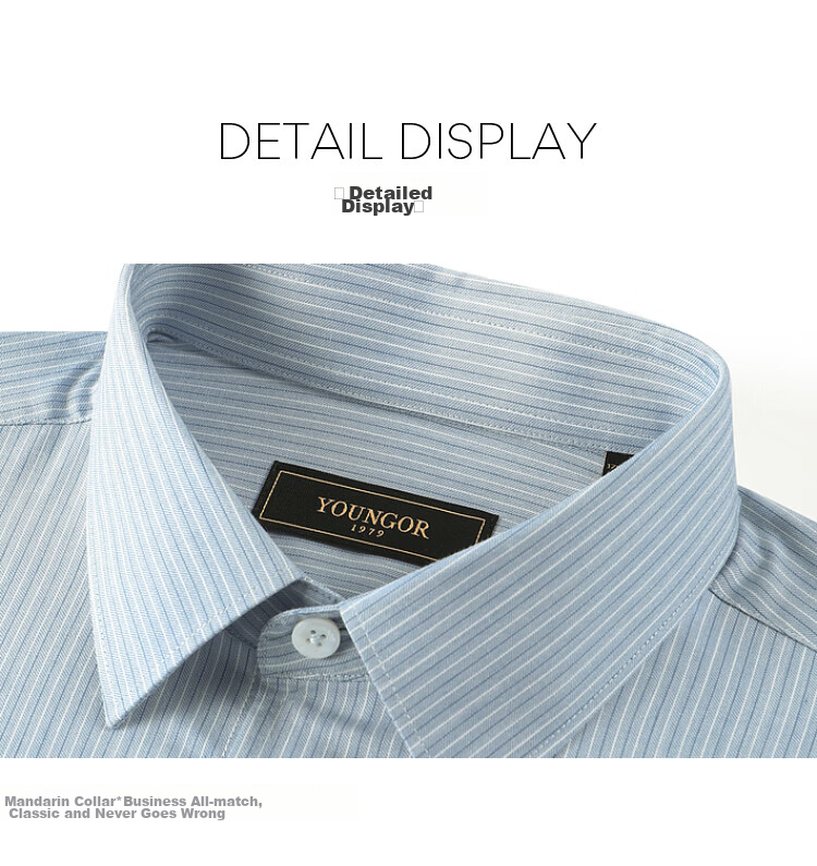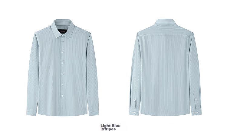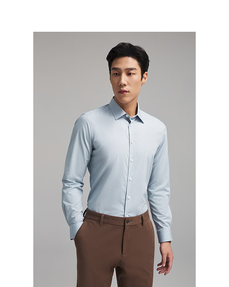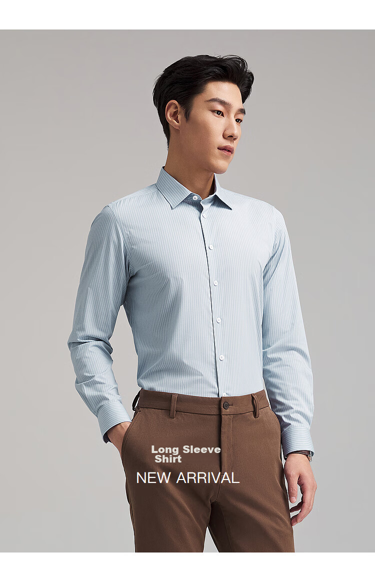 YOUNGOR Men's Shirt, Autumn High-End Striped Long-Sleeve Shirt for Young Men, Light Blue Stripes, Size 40
