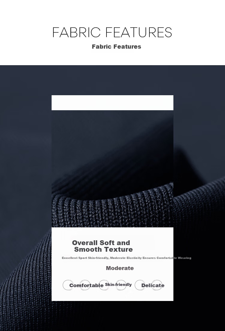 Fabric Features: Soft and smooth texture, excellent skin-friendly properties for sports, moderate elasticity for comfortable and delicate wear. Colors available: navy blue, black, light blue, off-white.