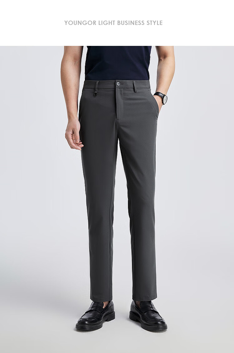 YOUNGOR Men's Pants 2024 Summer Youth Men's Business Casual Trousers Navy Blue 175/82A