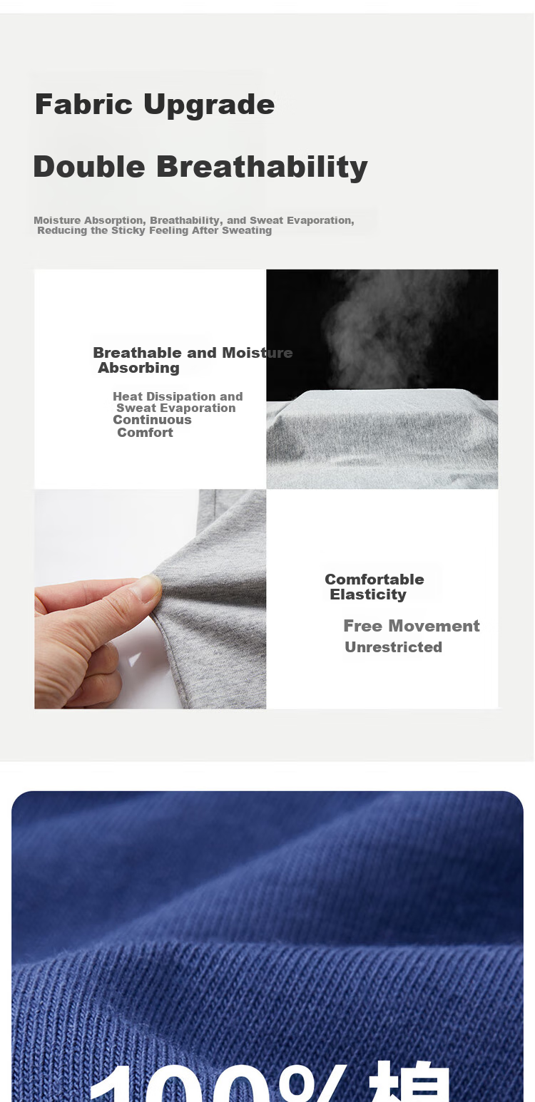 Fabric: Upgraded breathable cotton material, double the breathability, moisture-wicking to reduce sweat stickiness, comfortable elasticity for unrestricted movement