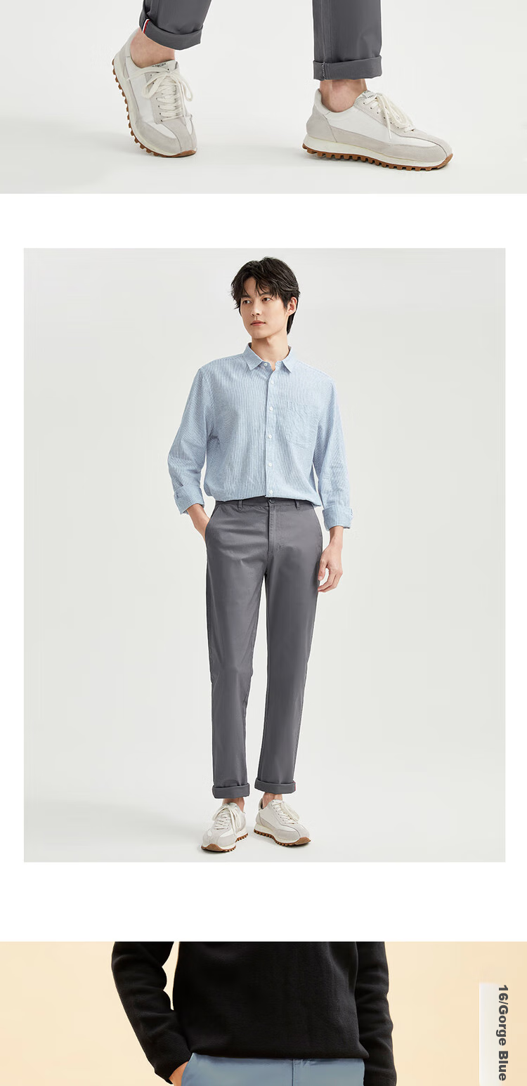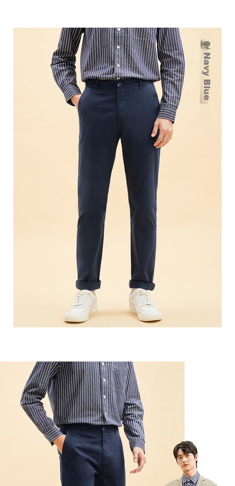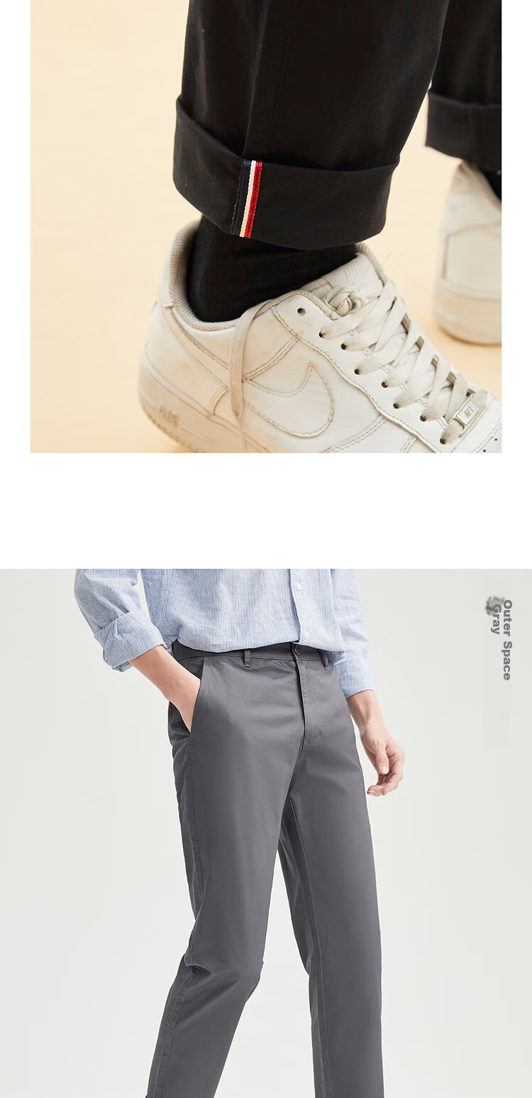 **Features:** Low-rise slim fit casual pants with stretch, classic design, suitable for various body types, comfortable fit, elastic waistband, smooth zipper closure, side pockets, back welt pockets, straight leg cut with stretch, available in various colors