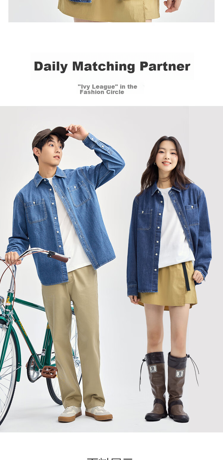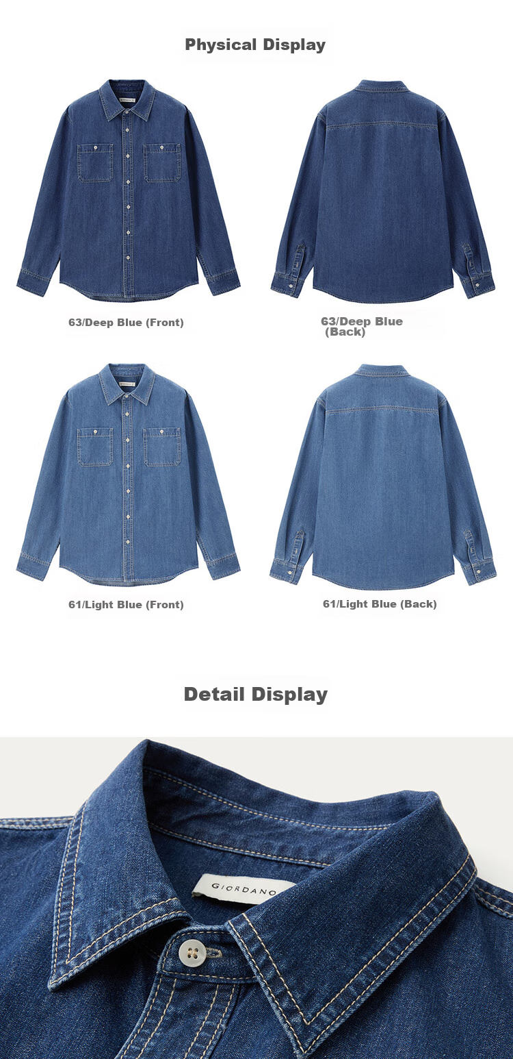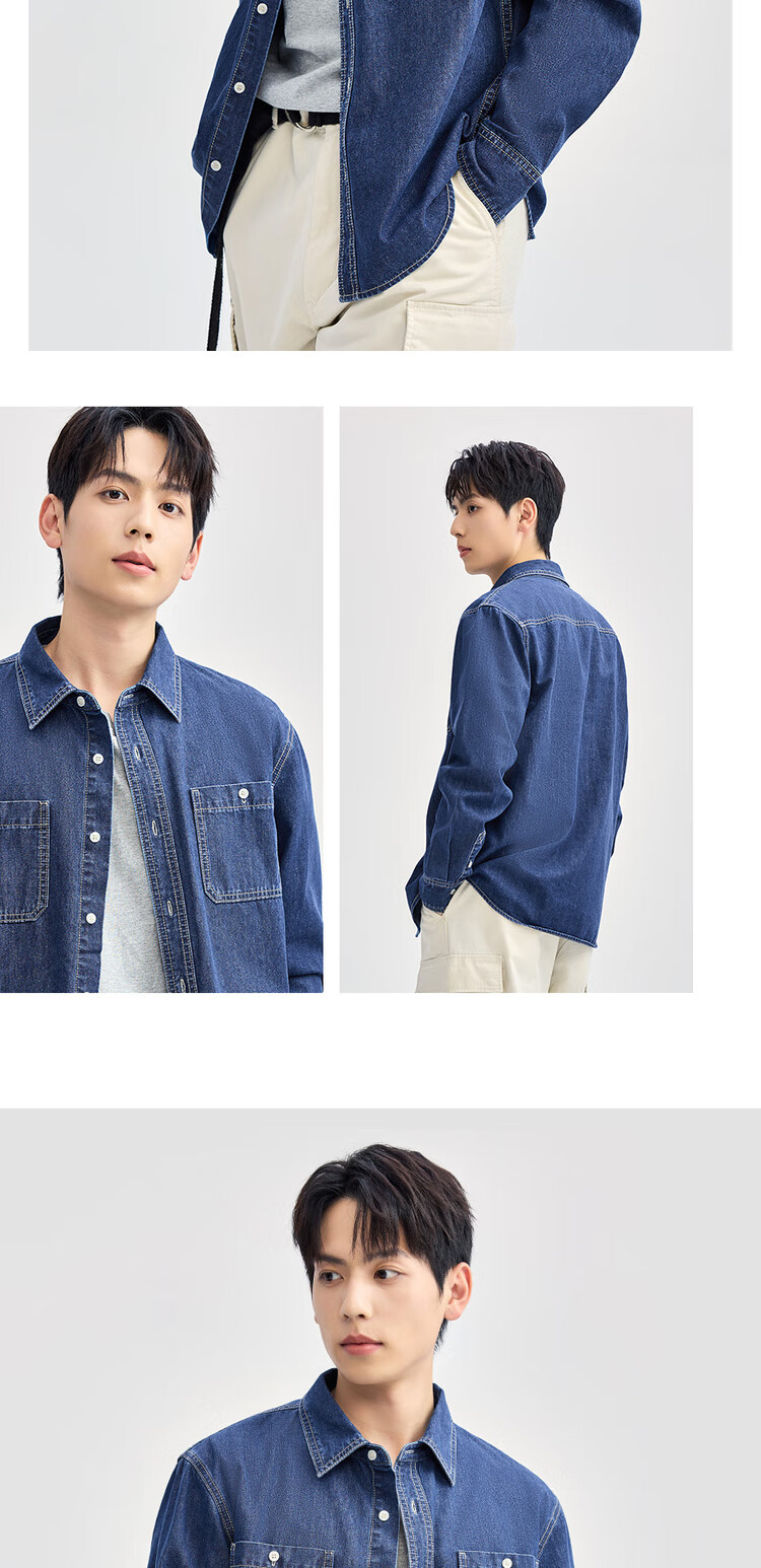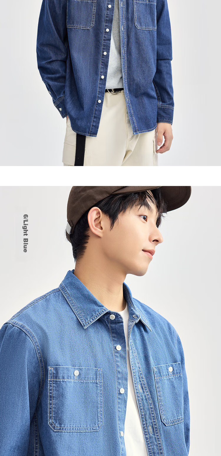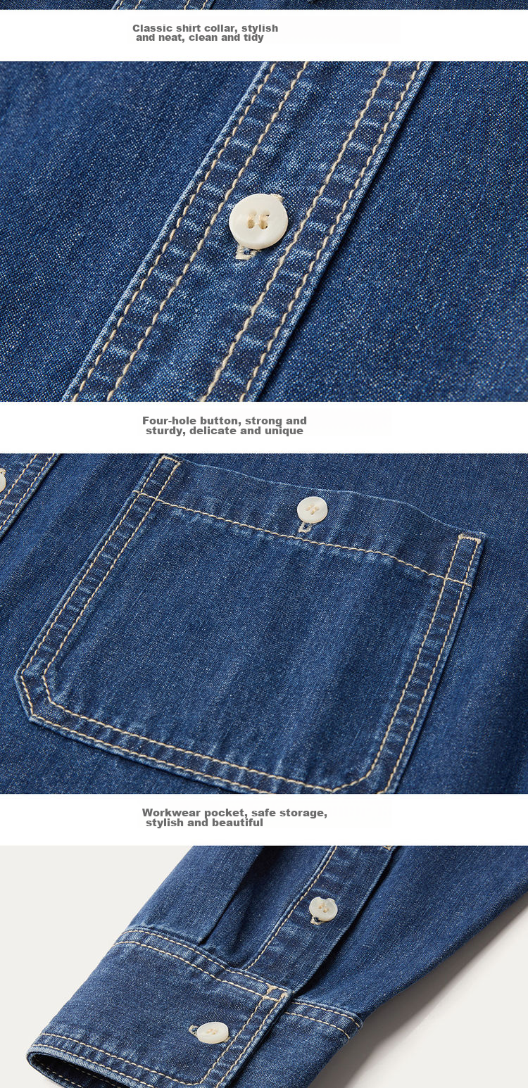 **Features:** Workwear style pockets, unisex denim shirt. Stylish and comfortable fit for various body shapes. Suitable for daily wear and a staple in fashion circles.