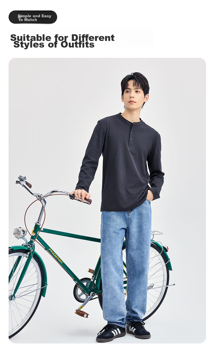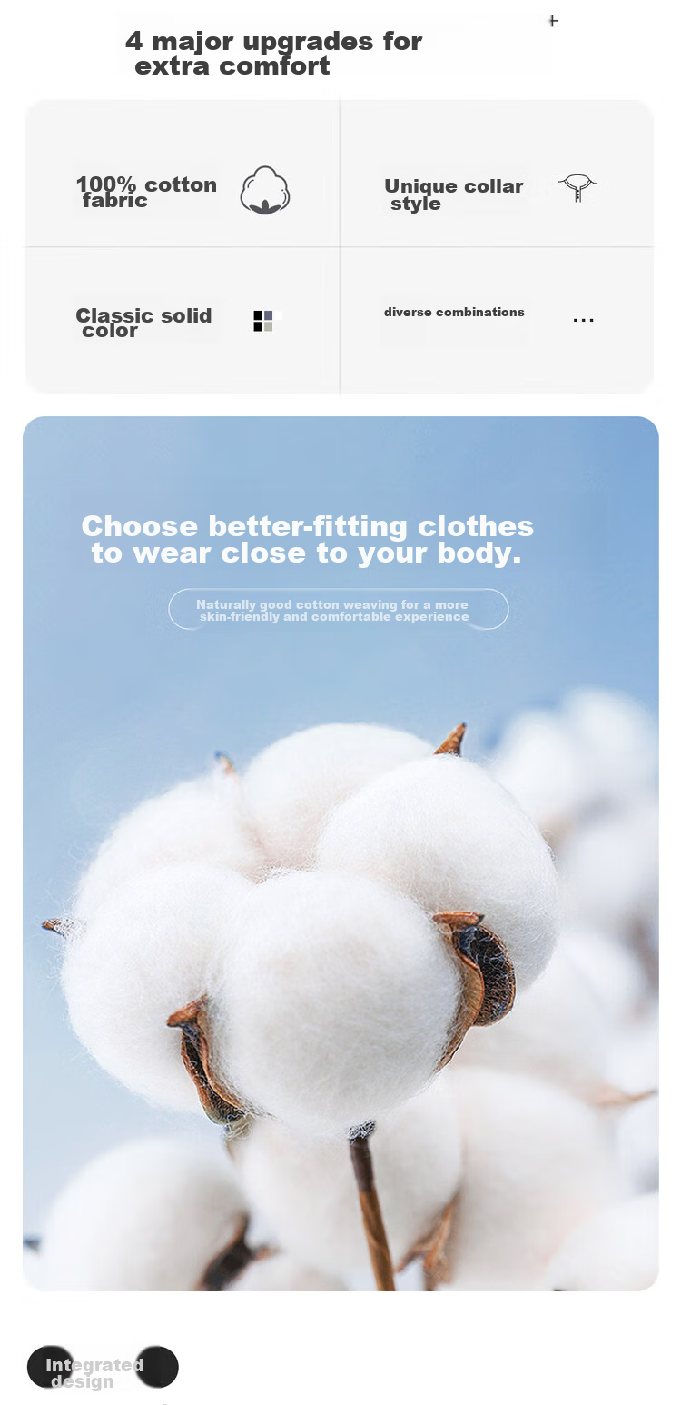 **Features:** Henry collar design, classic solid colors, comfortable and versatile, natural cotton fabric for skin-friendly comfort, tailored slim fit, suitable for different styles