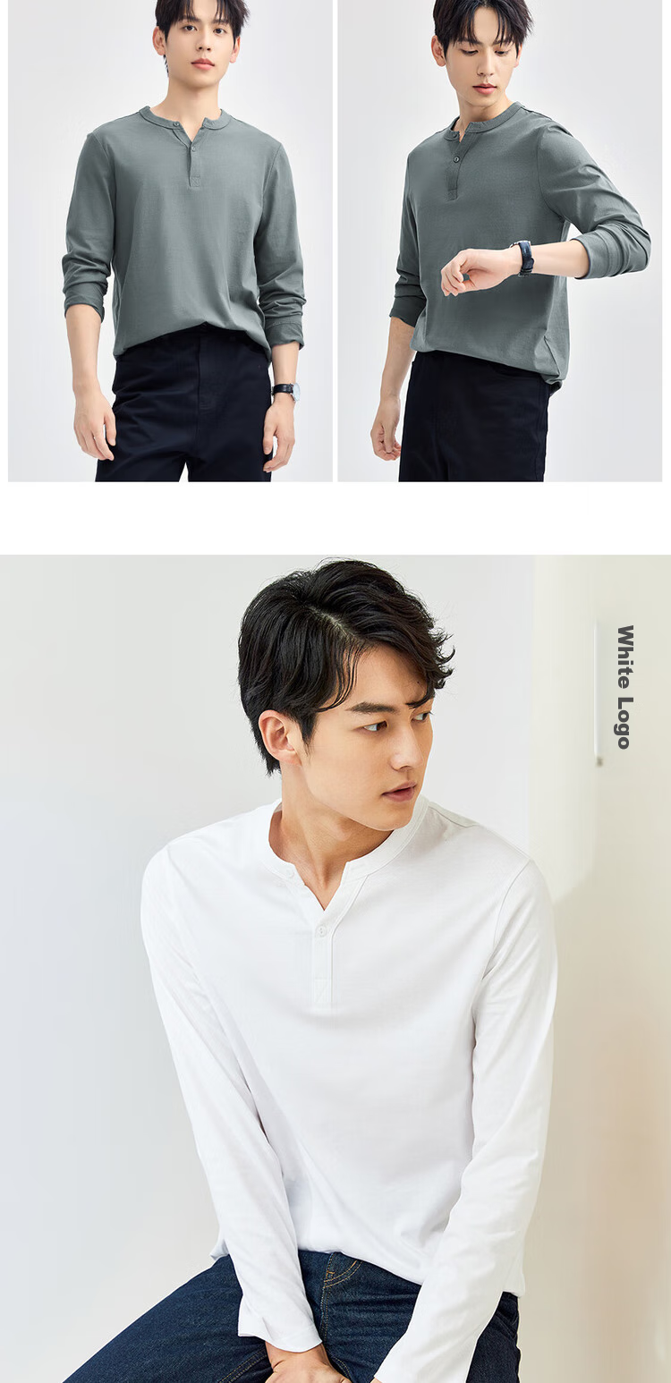 Zuodannu Men's Cotton Solid Color Undershirt, Men's Henley Collar Long Sleeve T-Shirt, 01024821