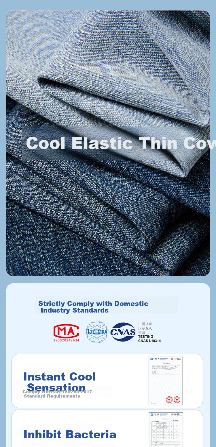 **Technology:** Cooling elastic thin denim, meets strict domestic industry standards