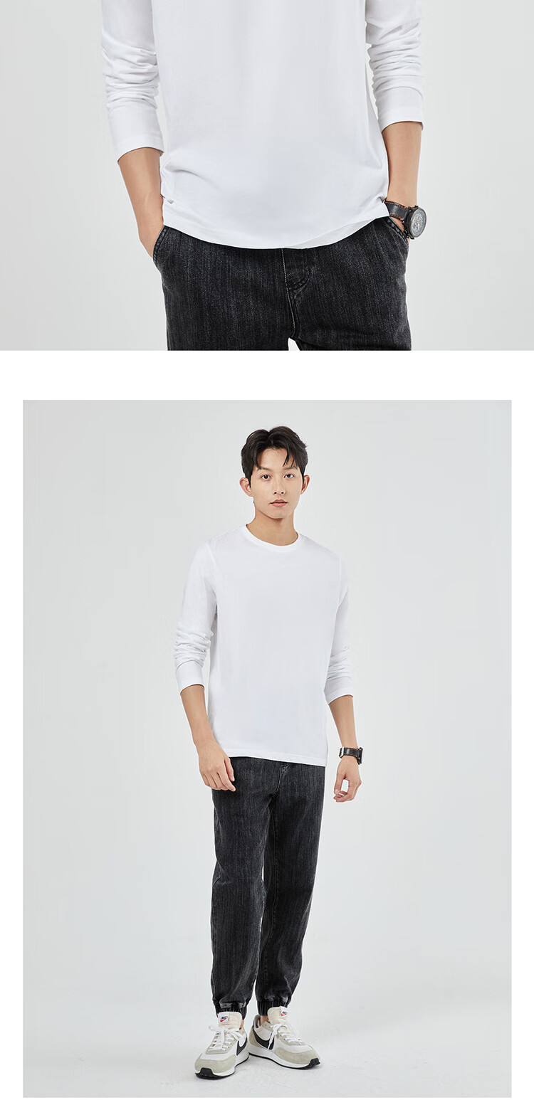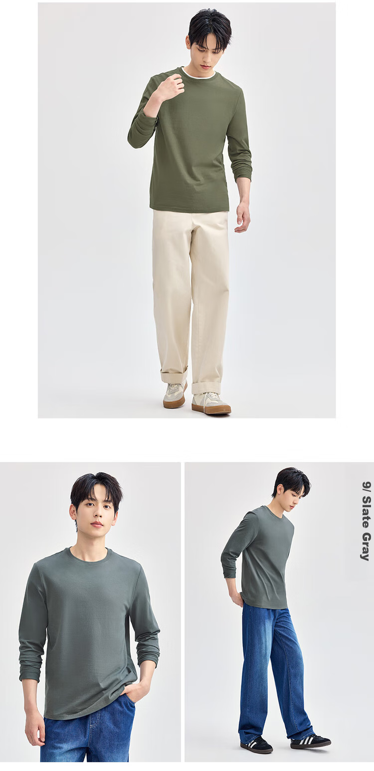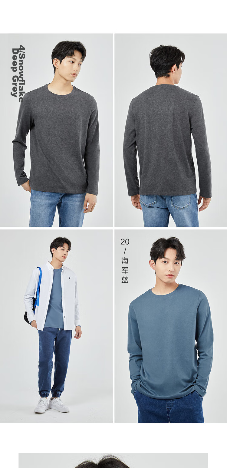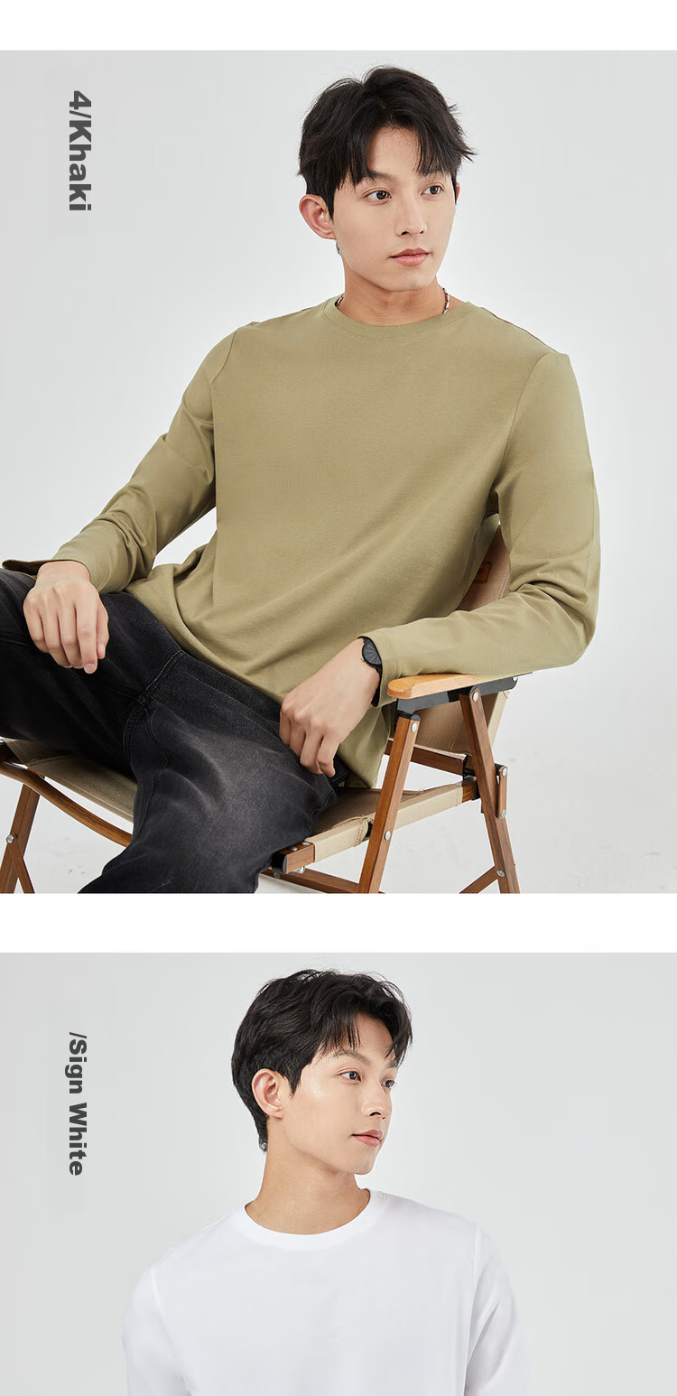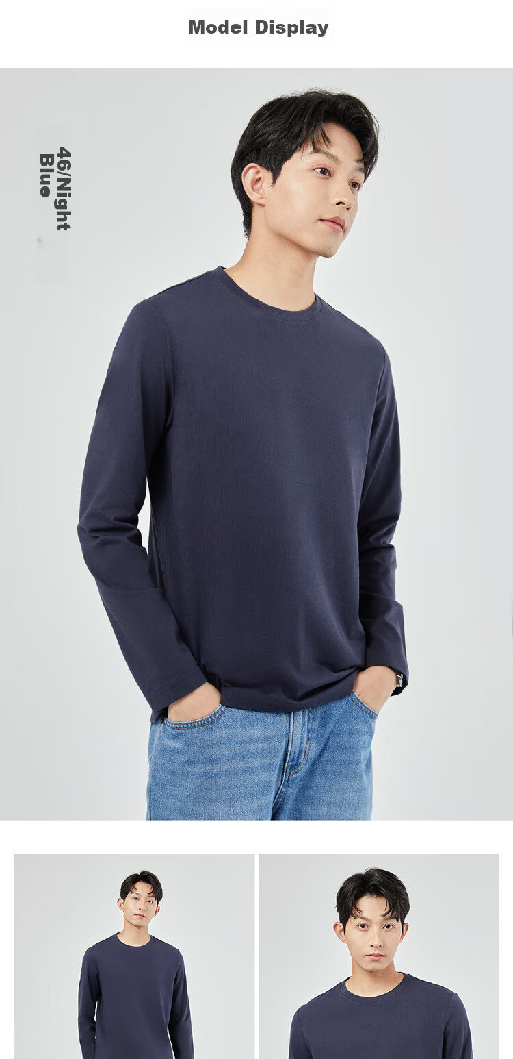 **Details:** Ribbed round neck, double-stitched cuffs and hem for durability