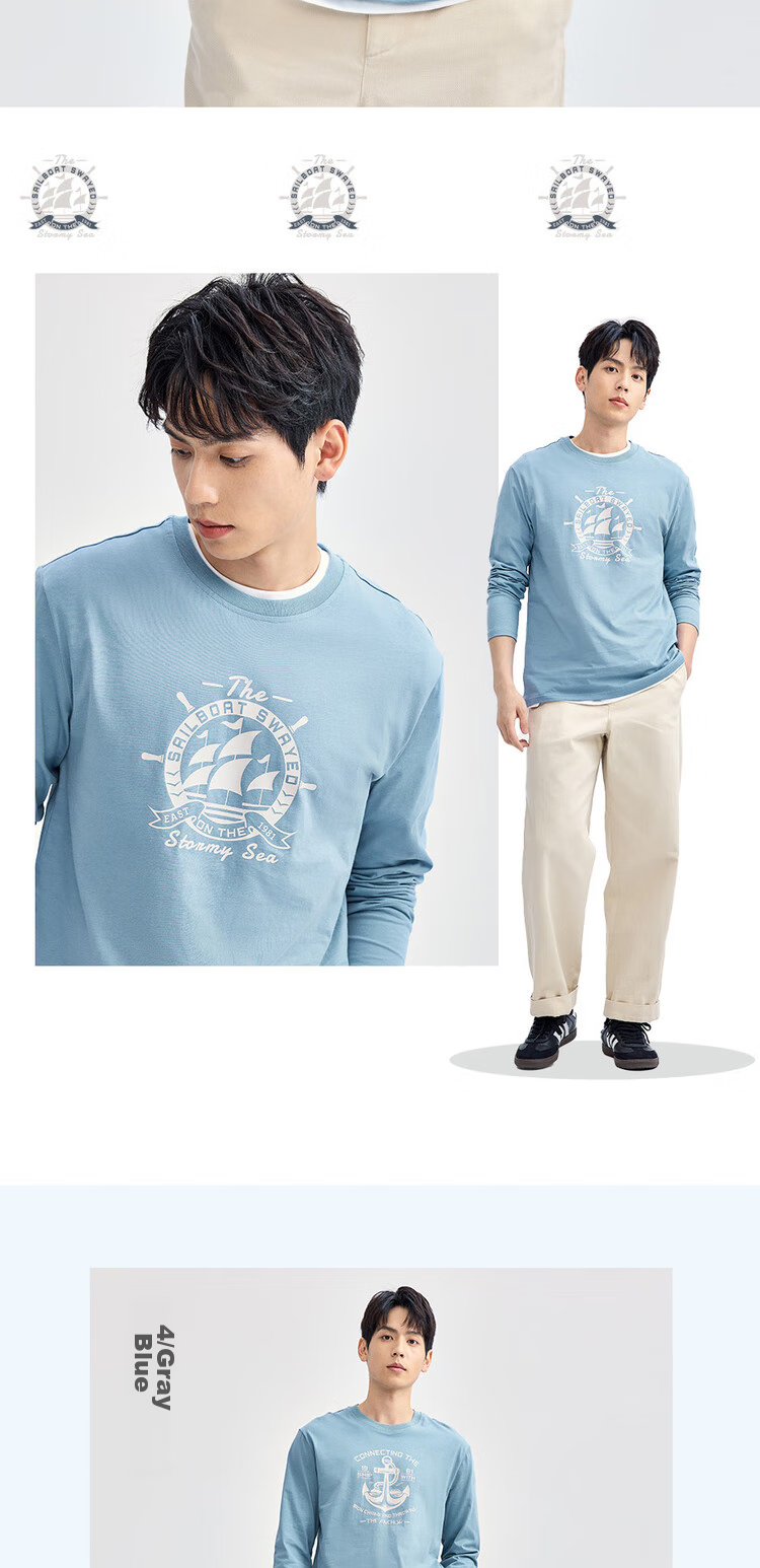 **Details:** Ribbed round neck, double-stitched cuffs and hem for durability