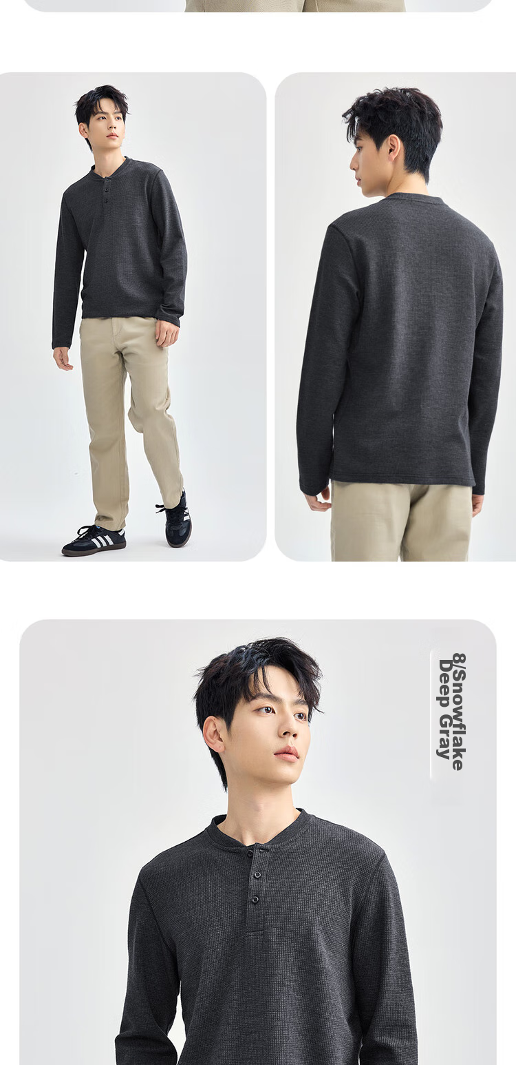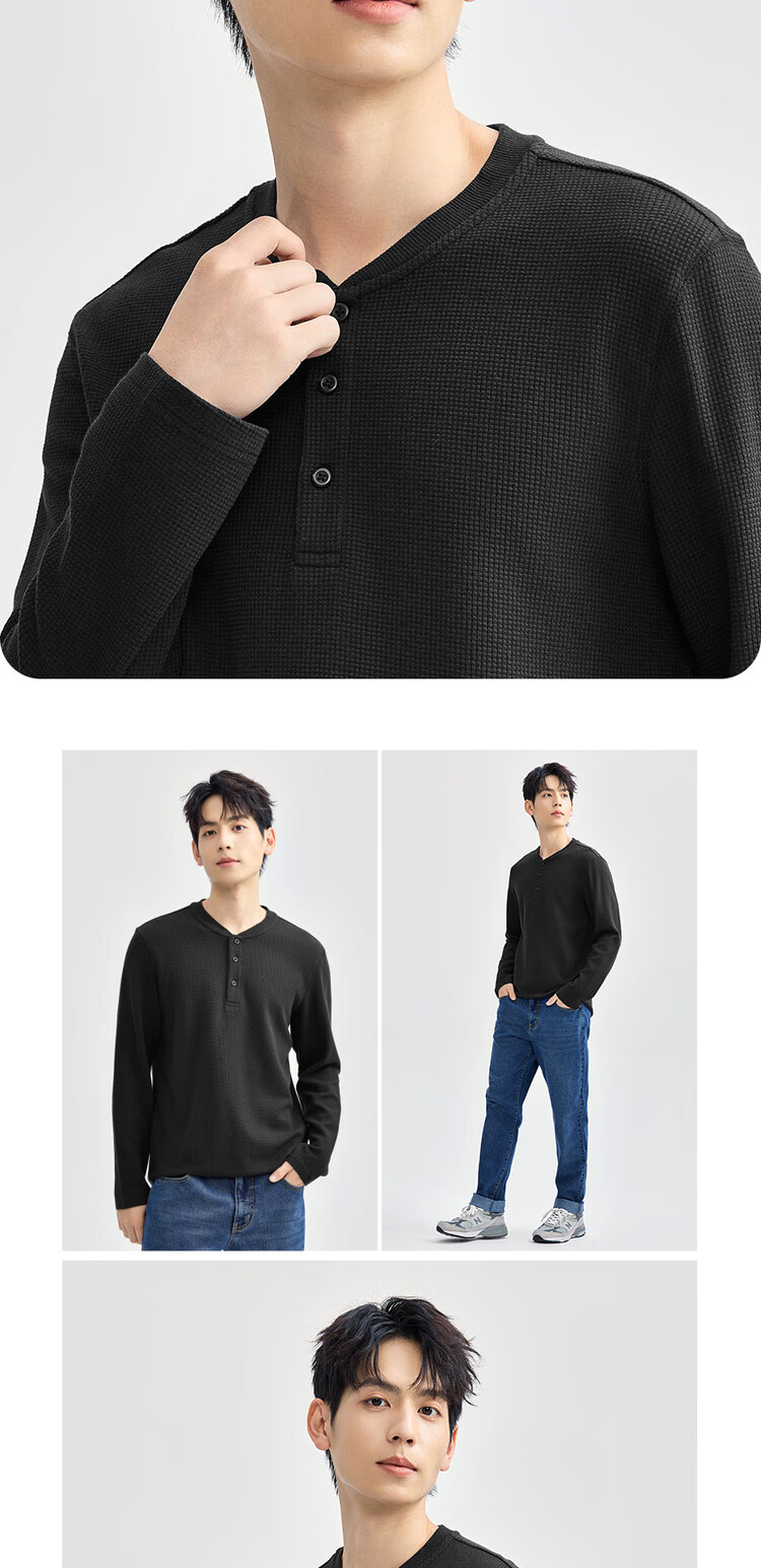 - Stylish Henley neckline exuding a gentlemanly charm