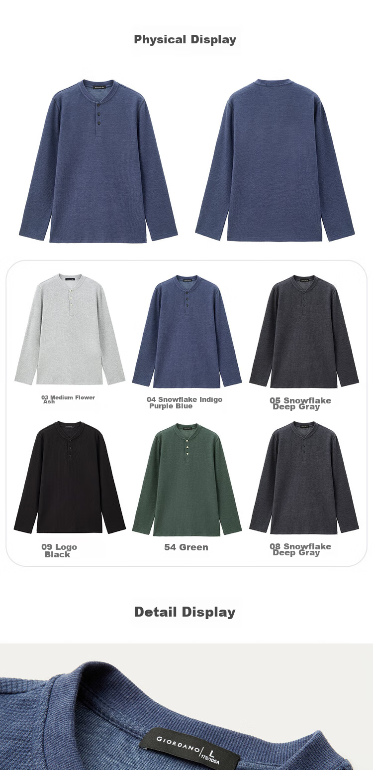 - Giordano Henley neckline design for a refined look