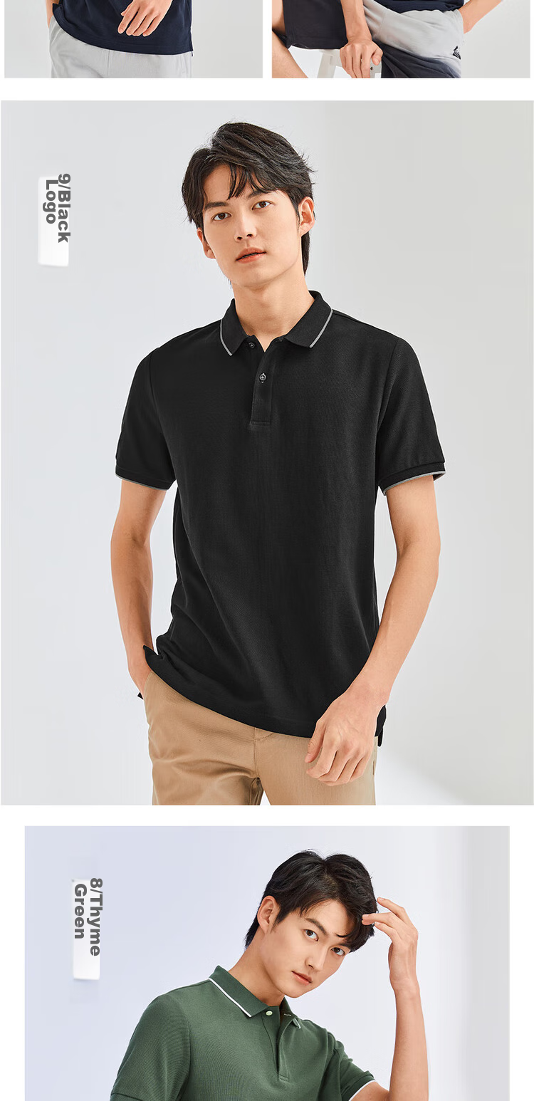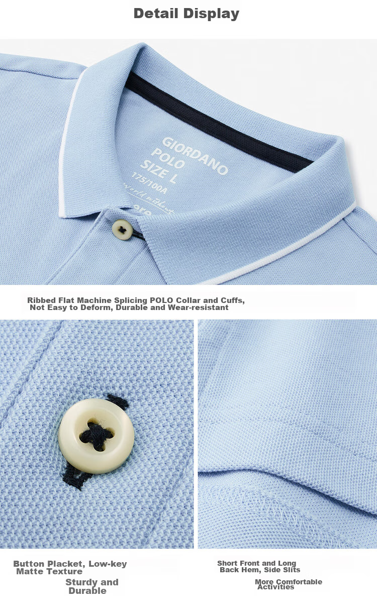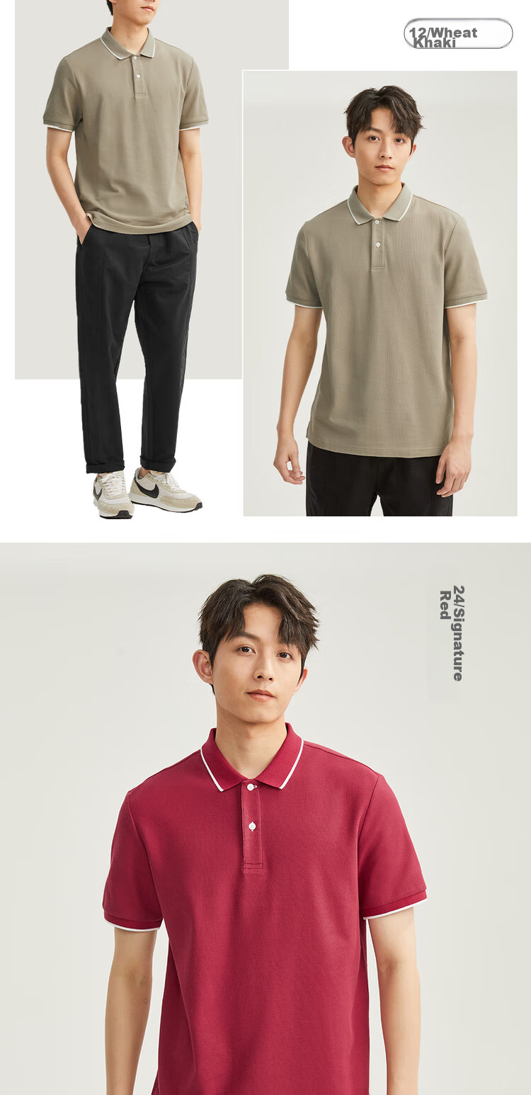 Design: Color-blocked polo shirt with a simple yet stylish collar