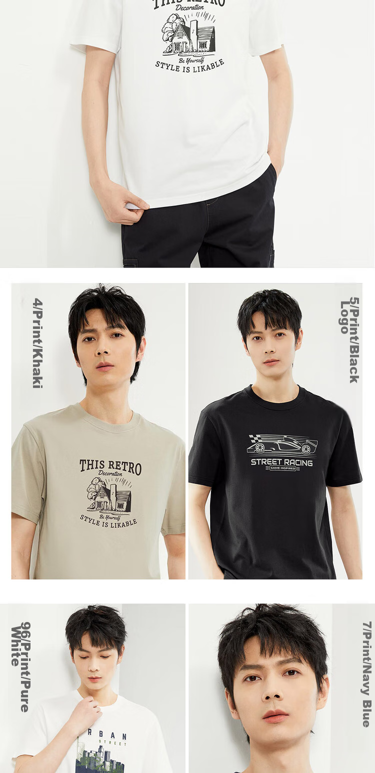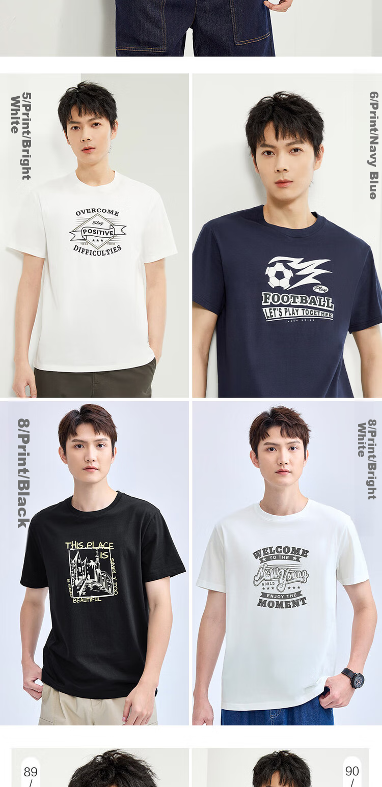 - **Prints:** 5/White Print, 6/Navy Blue Print, ST, FOOTBALL, LET'S PLAY TOGETHER, 8/Black Logo Print, 8/White Logo Print, THSPLAC, eWgcung, WOLD***, 89, 90, Decoralio, Betfourself, 4/Khaki Print, 5/Black Logo Print, THIS RETRO, STREETRACING, Beloursd, 96/White Print, 7/Navy Blue Print, OneWay, URBAN EXPLORER, 8/Dark Gray Lettering, 9/Falcon Brown Lettering, FORTUNE