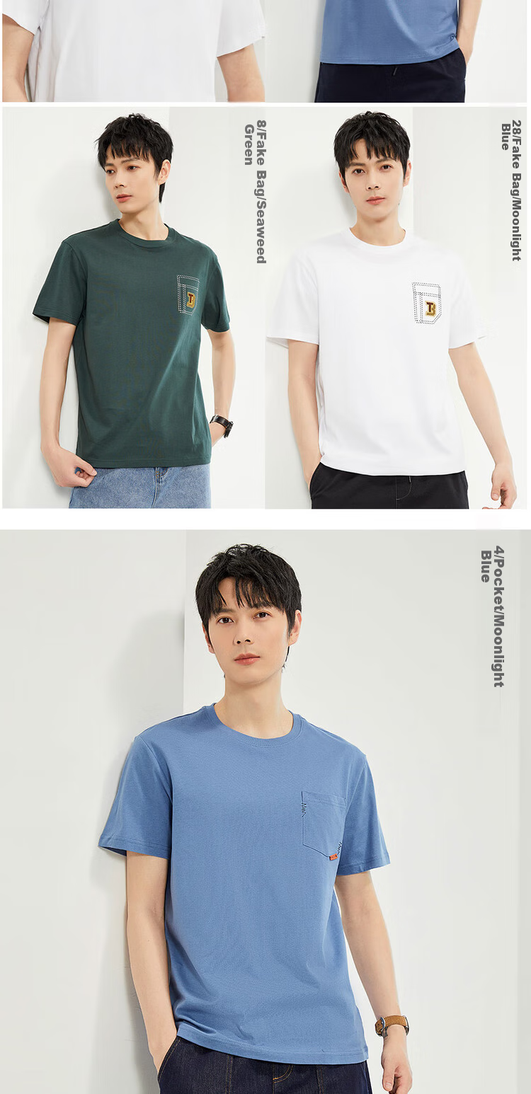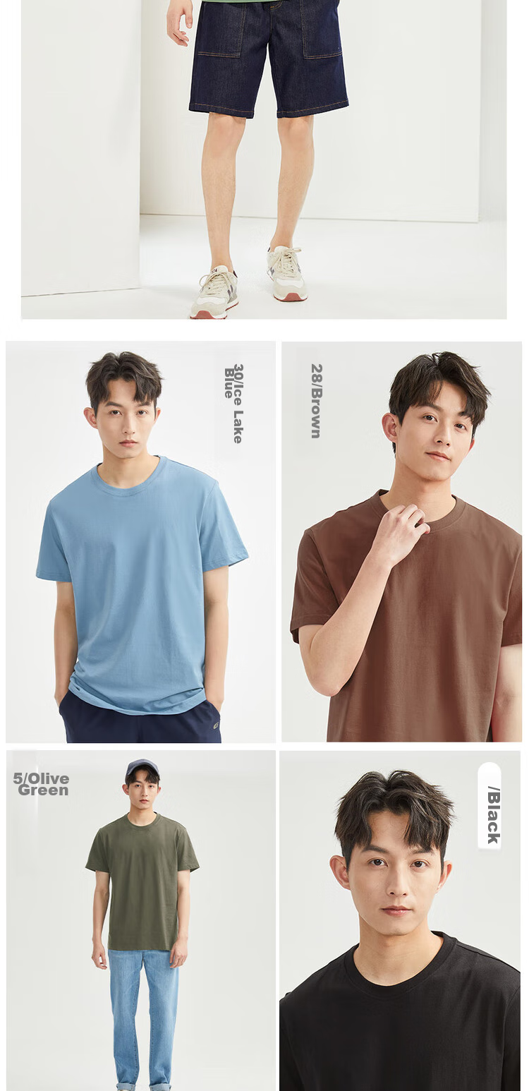 Zuodannu Men's Short-Sleeve T-Shirt, Knitted Pure Cotton, Solid Color, Simple Basic Style, Comfortable Round Neck Tee, 01023419