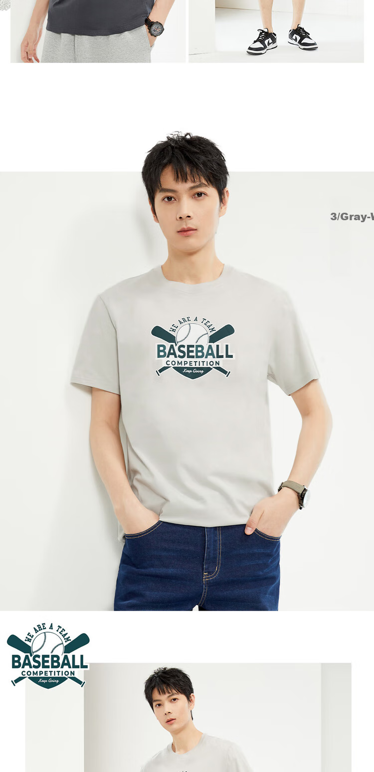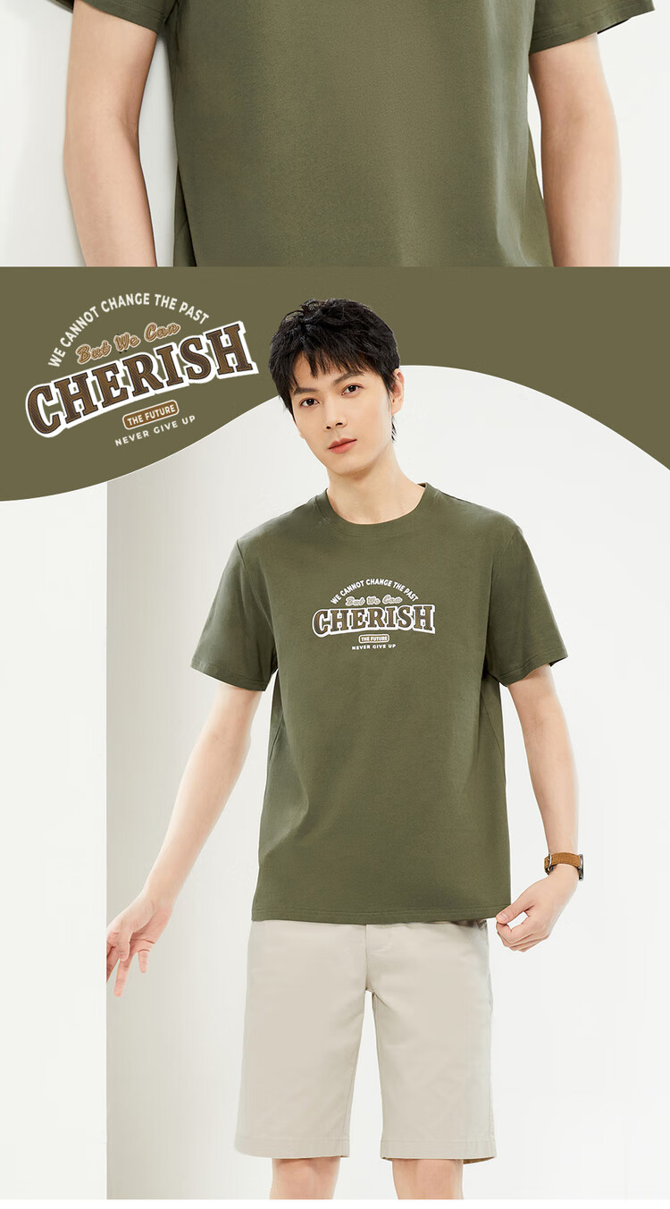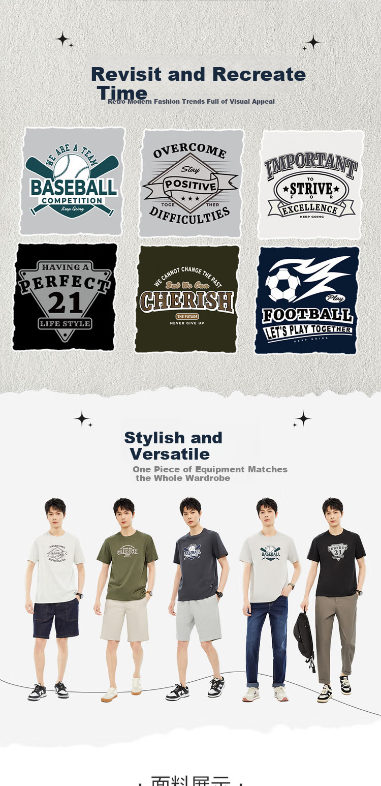 Zuodannu Men's Short-Sleeve T-Shirt, Pure Cotton, Retro Printed, Round Neck, Casual Sports Tee, Men's Style 13094201