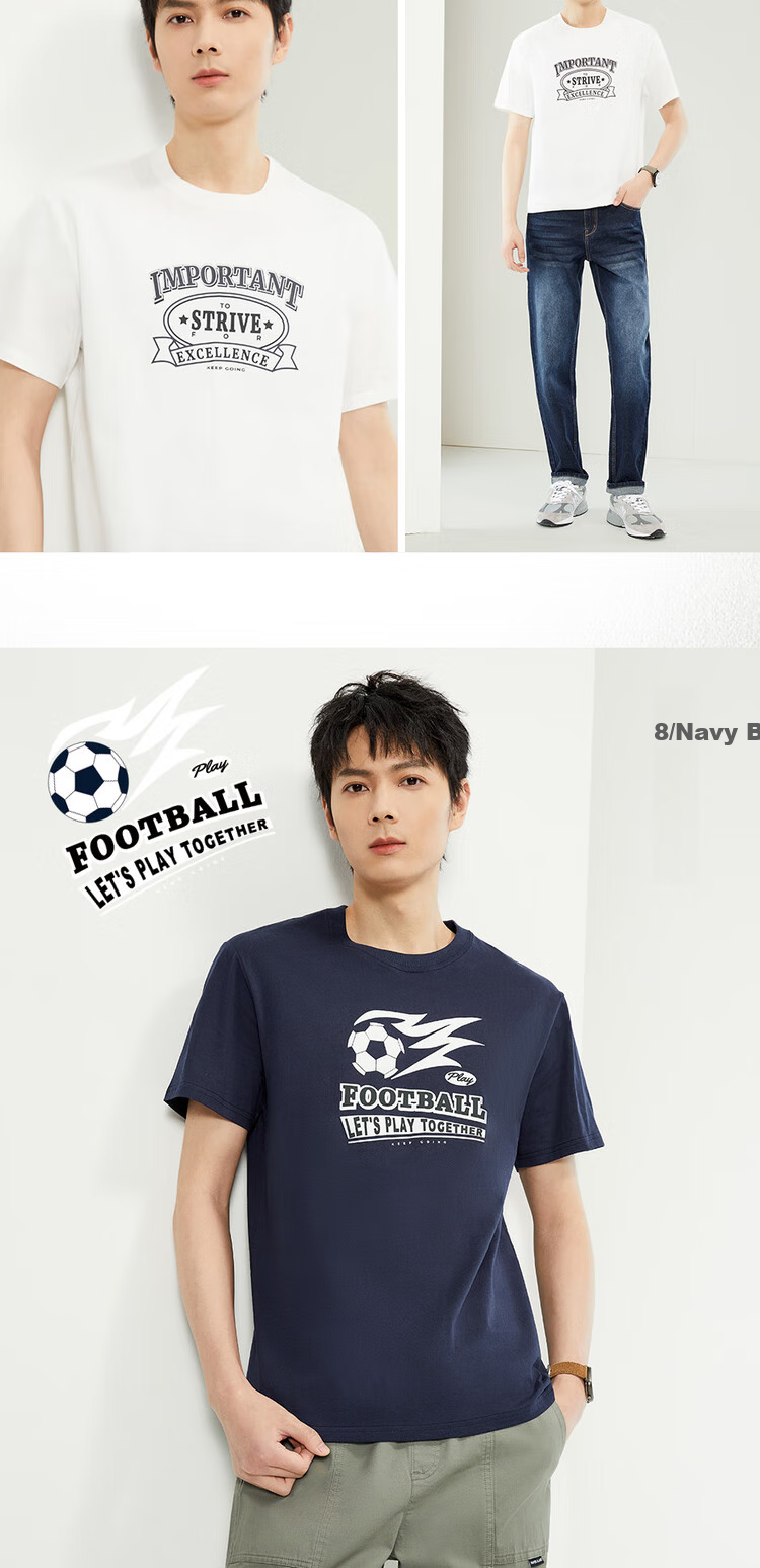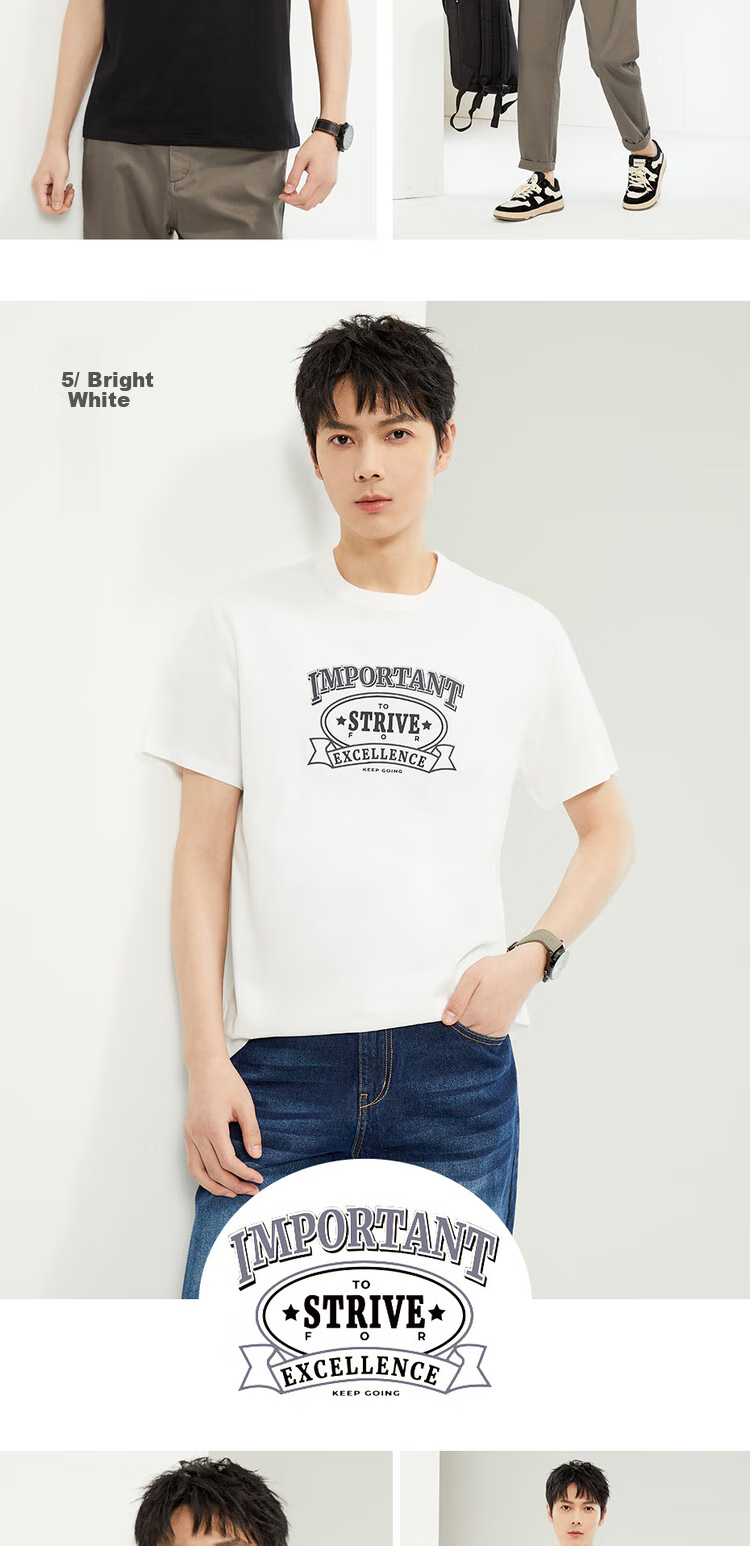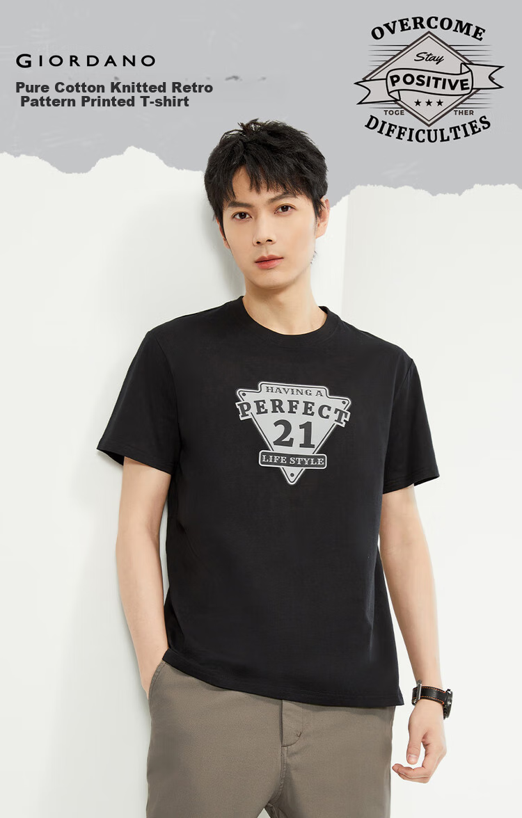 Zuodannu Men's Short-Sleeve T-Shirt, Pure Cotton, Retro Printed, Round Neck, Casual Sports Tee, Men's Style 13094201