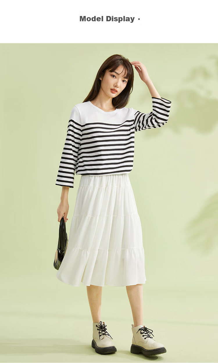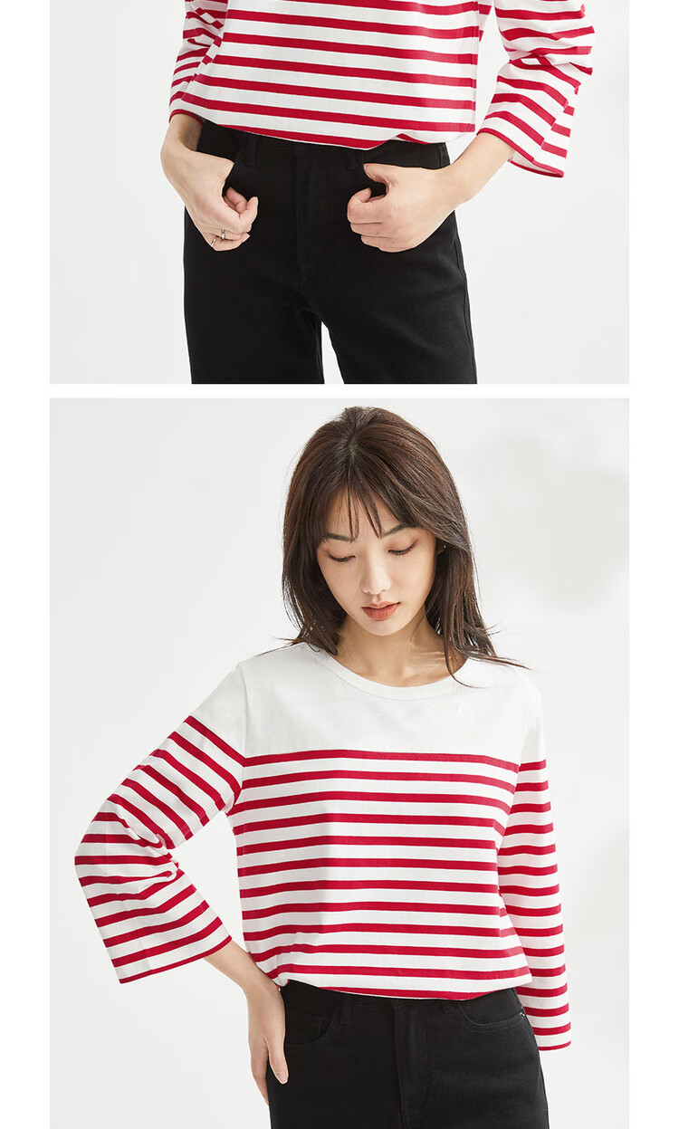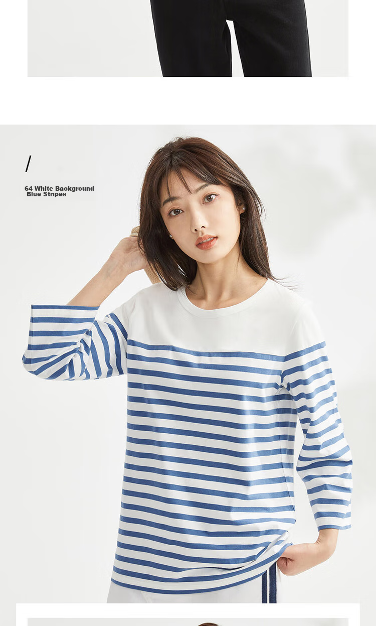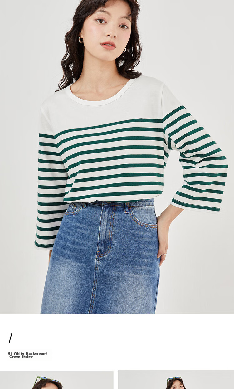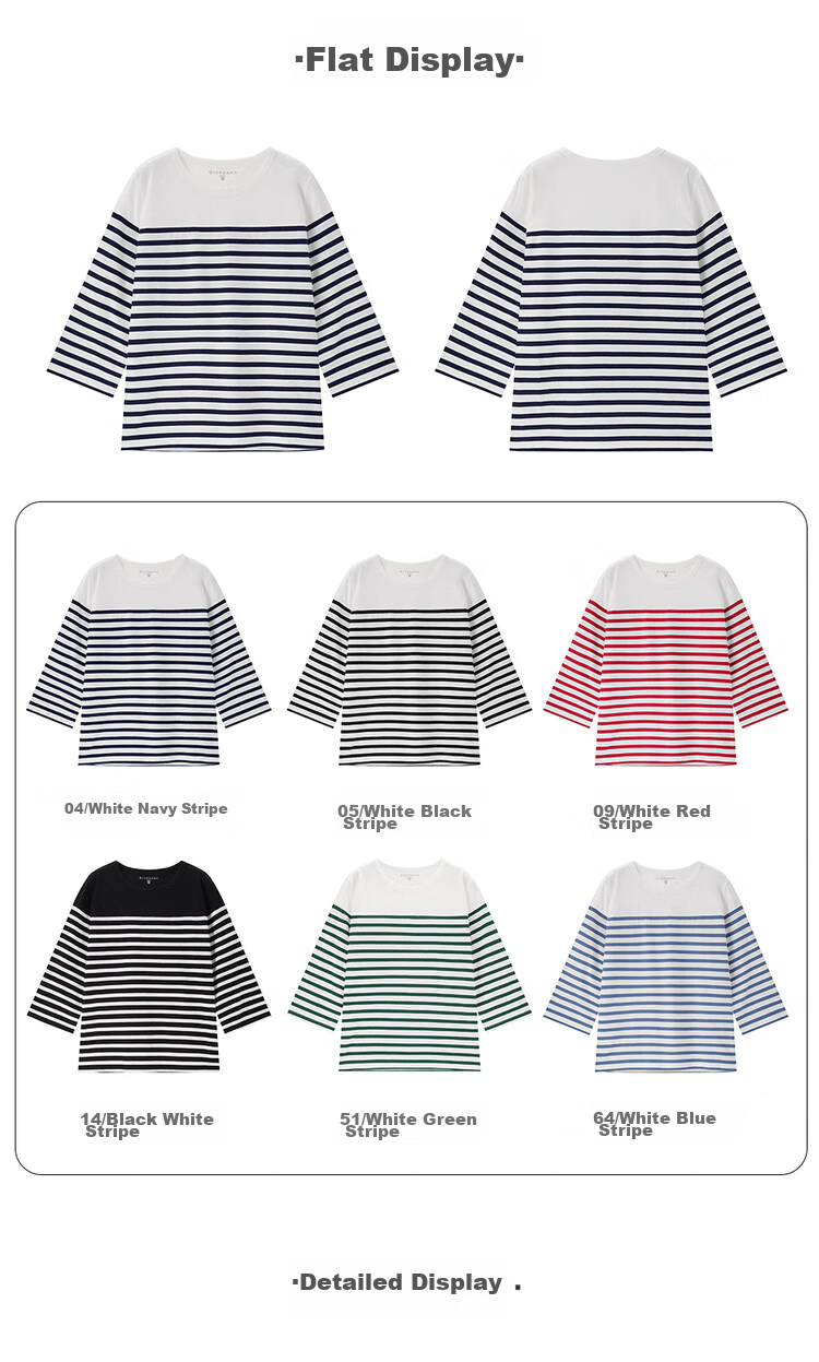 - Pure cotton contrast stripe seven-point sleeve T-shirt