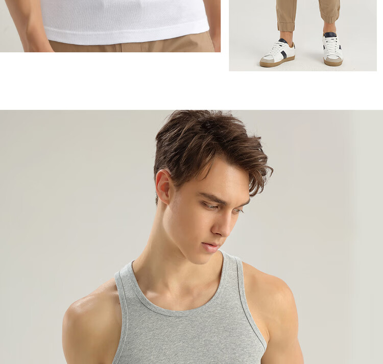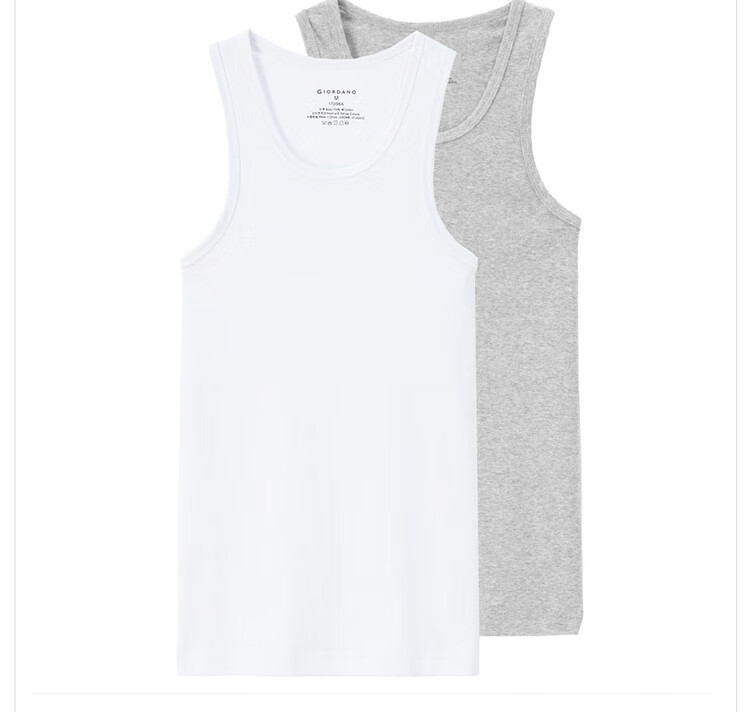 Giordano Men's Cotton Solid Color Basic U-neck Slim Fit Tank Top 2-Pack White/Floral Grey Large Size (175/100A)