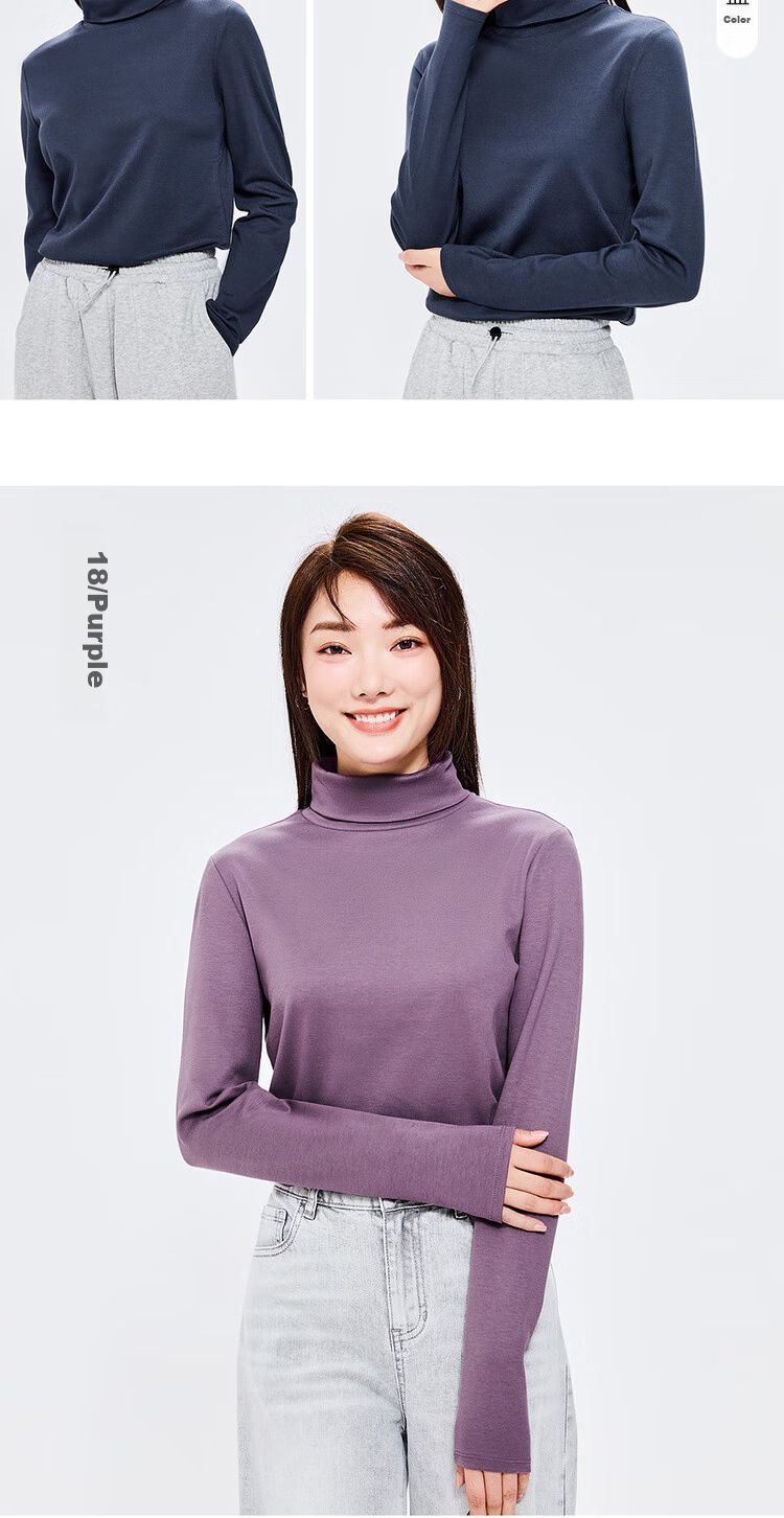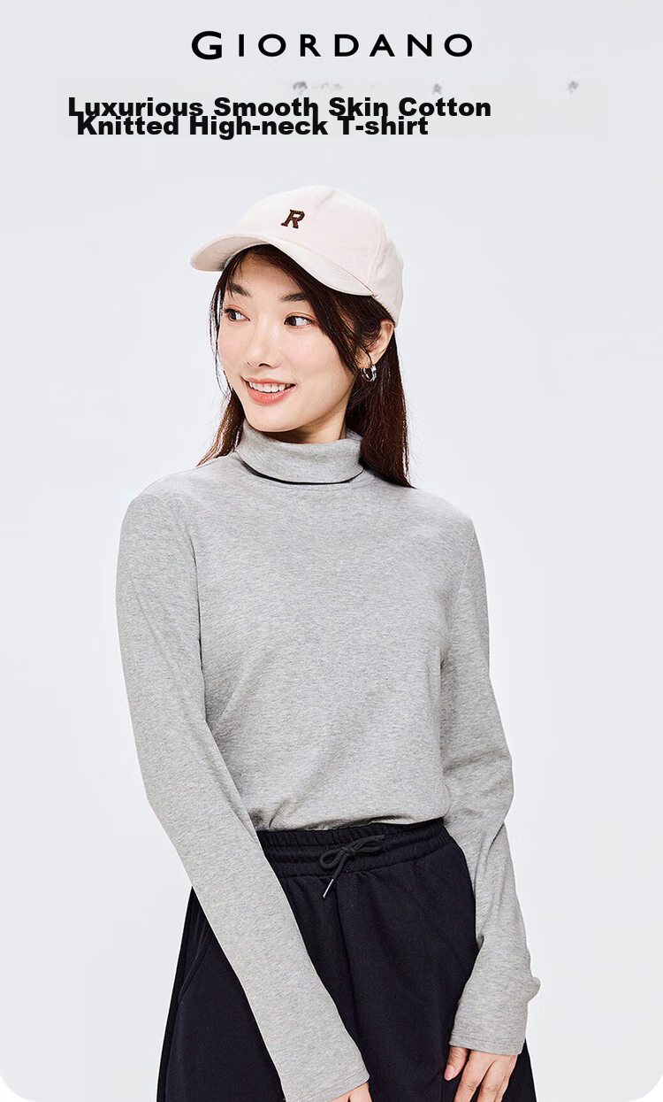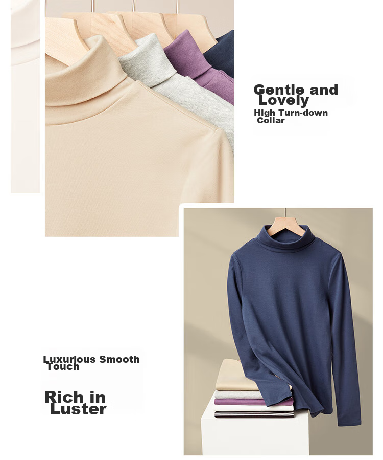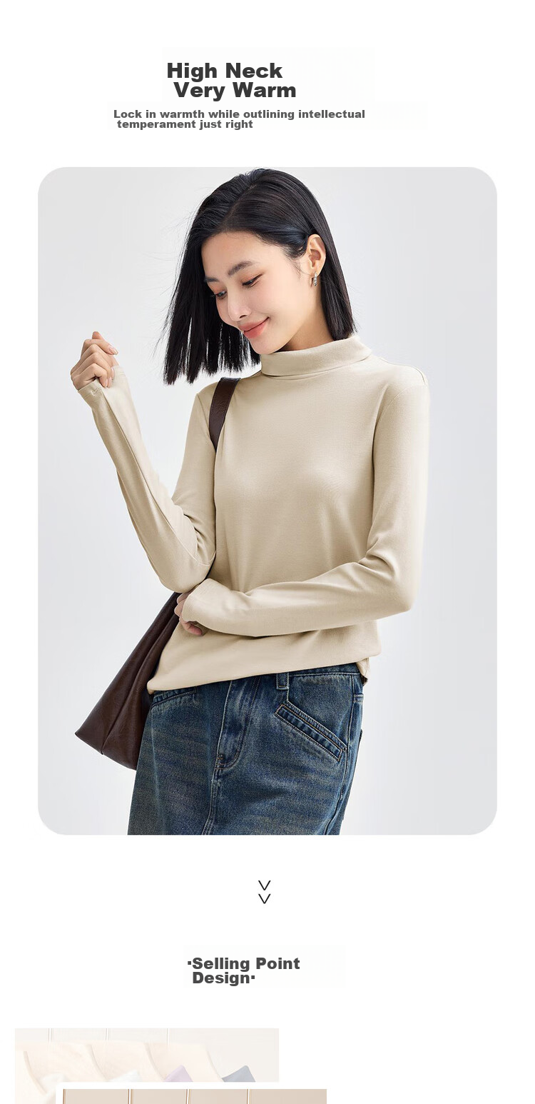 **Design:** High-neck T-shirt with a warm and luxurious feel, suitable for layering or wearing alone
