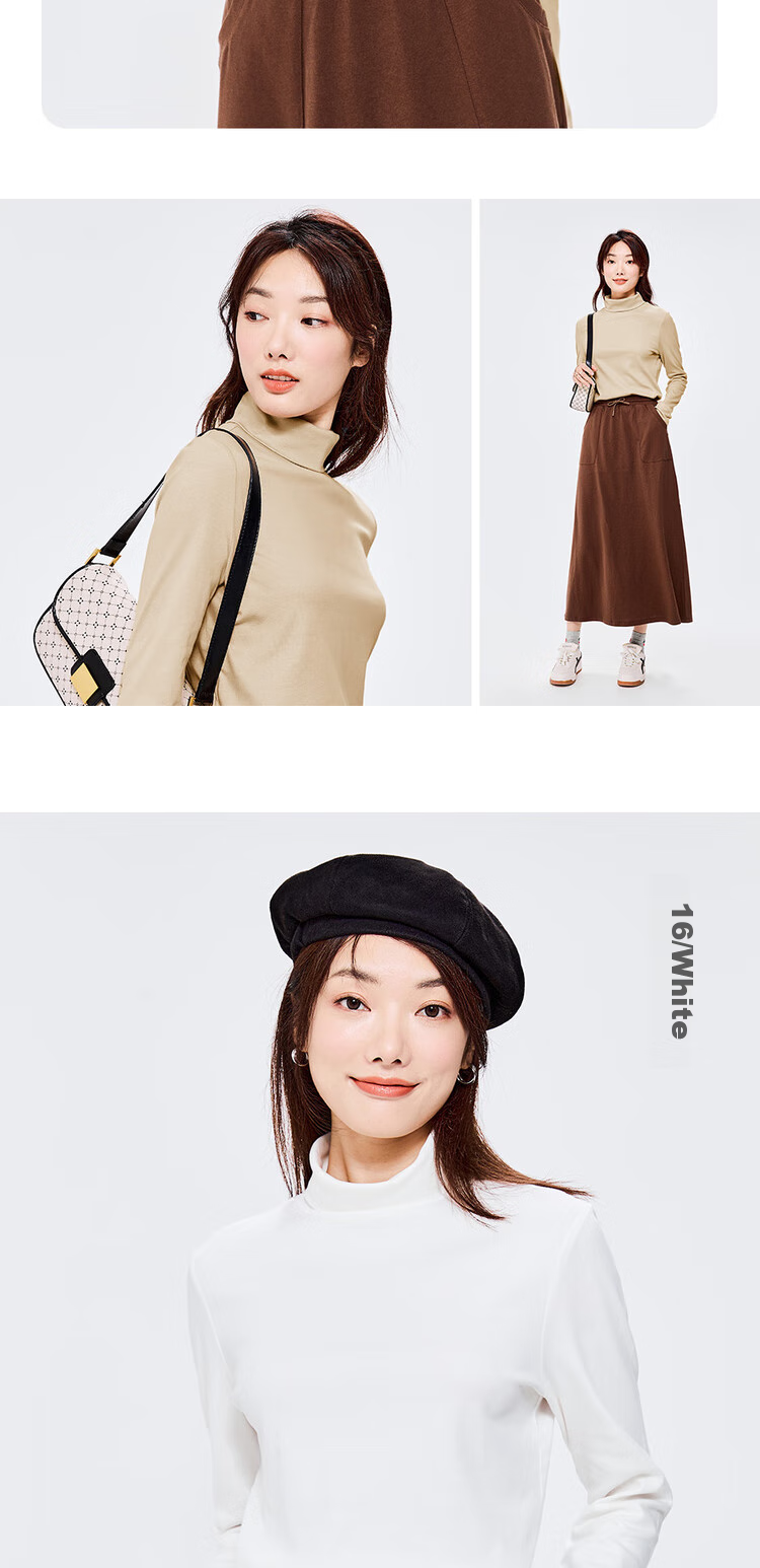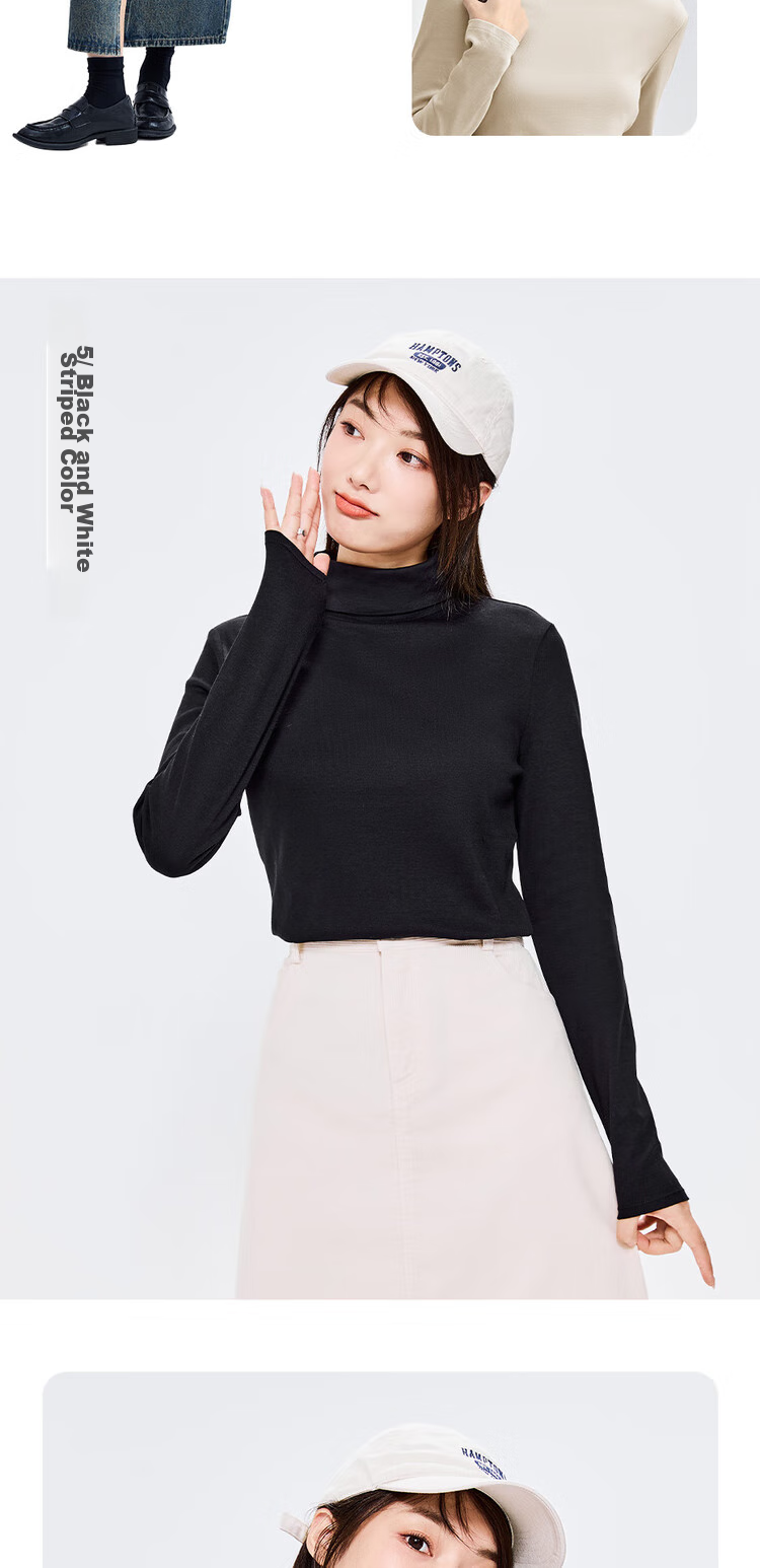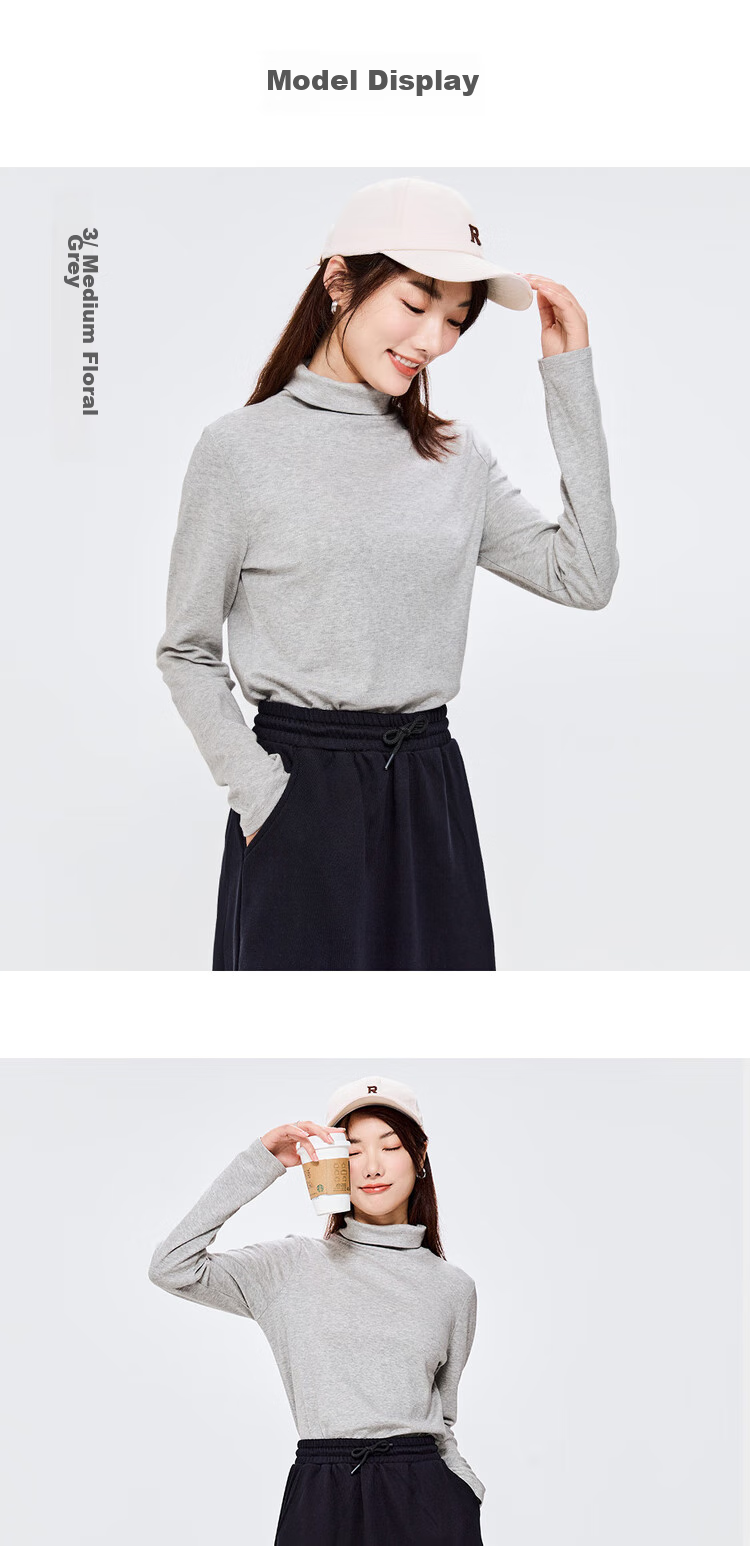 **Design:** High-neck T-shirt with a warm and luxurious feel, suitable for layering or wearing alone