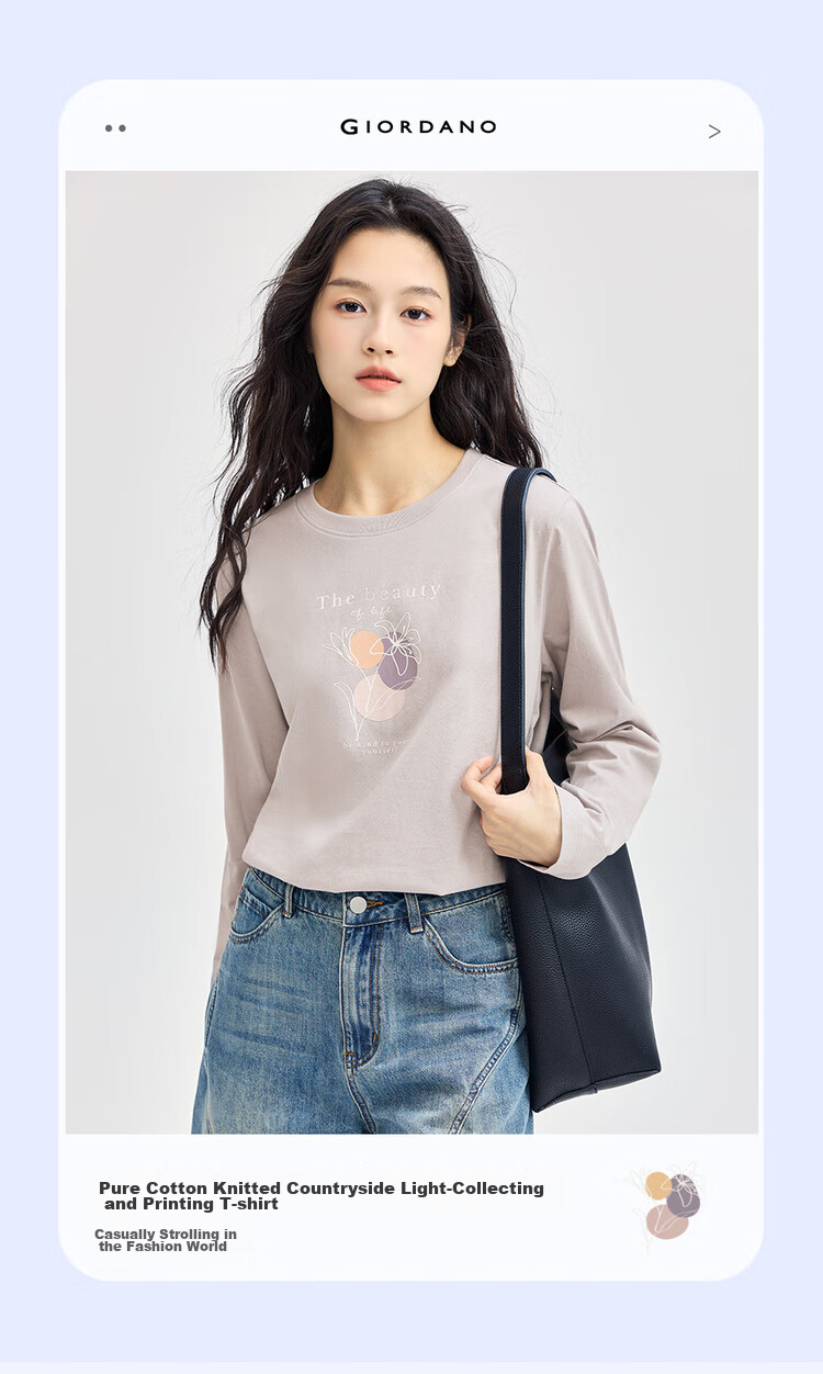 **Design:** Countryside-inspired printed T-shirt with ribbed round neckline