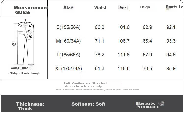 **Measurements:** Size, Waist, Hip, Thigh, Length